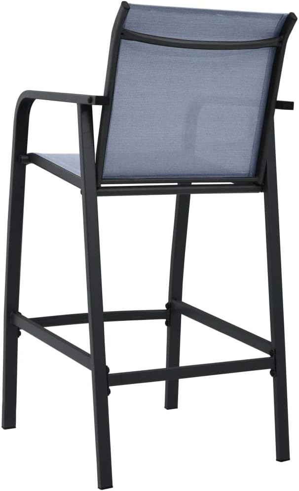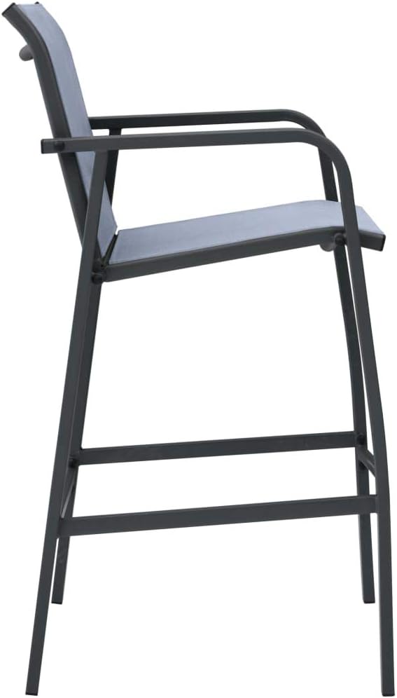 vidaXL Set of 4 Grey Textilene Garden Bar Chairs – Sturdy Metal Frame Outdoor Patio Seating, Lightweight Design, Easy Assembly