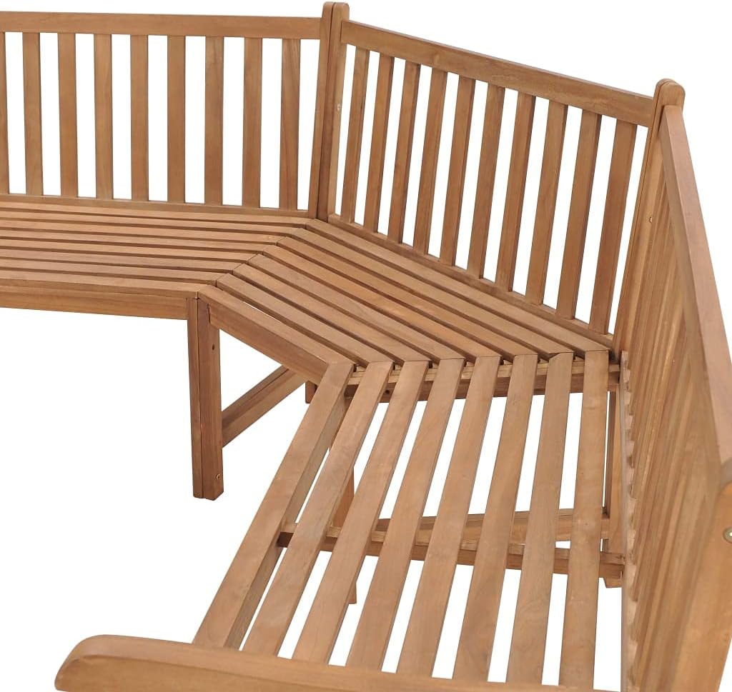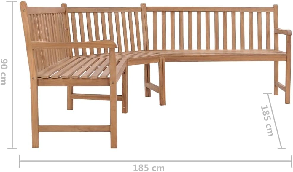 vidaXL Solid Teak Wood Garden Corner Bench Outdoor Patio Terrance Backyard Furniture Accessories Wooden Bench Seating Chair Seat Durable