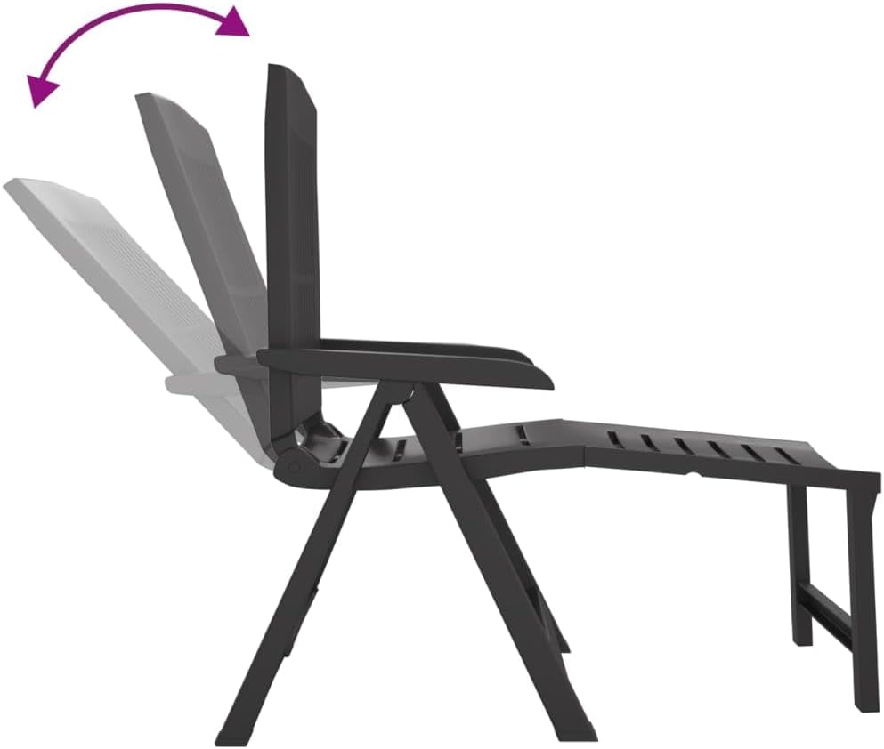 vidaXL Sun Lounger in Anthracite Color – Plastic Outdoor Chair with Adjustable Backrest, Foldable, Lightweight, and Weather-resistant, for Garden, Patio, Poolside, Deck