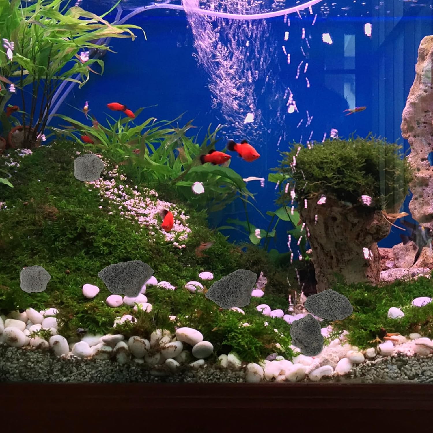 The decorative stones of the aquarium are made of natural and safe materials, which are durable and durable.