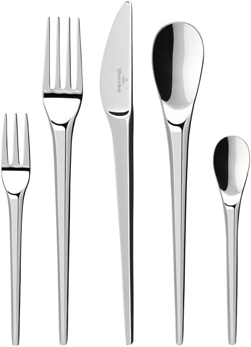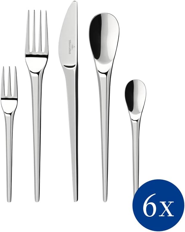 Villeroy & Boch – New Moon Cutlery Set 30 Pieces for 6 People, Dishwasher Safe, Rustproof, Knife, Fork, Spoon, Luxury Cutlery Set, Dinner, 18/10 Stainless Steel