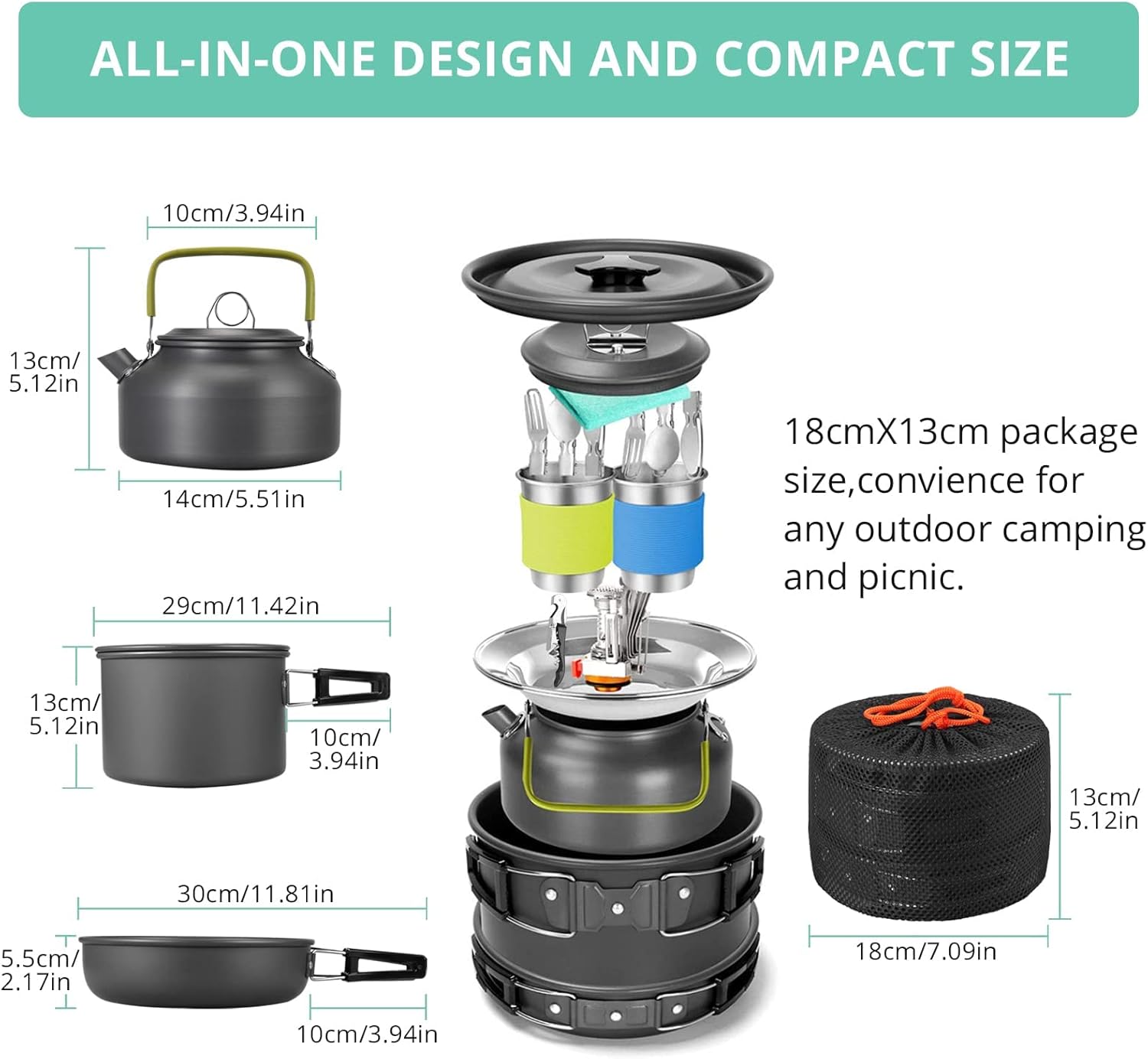 IDEAL FOR CAMPING. This lightweight camping stove set is suitable for 2-3 people and is a good choice for camping, hiking, backpacking, picnic or other activities.