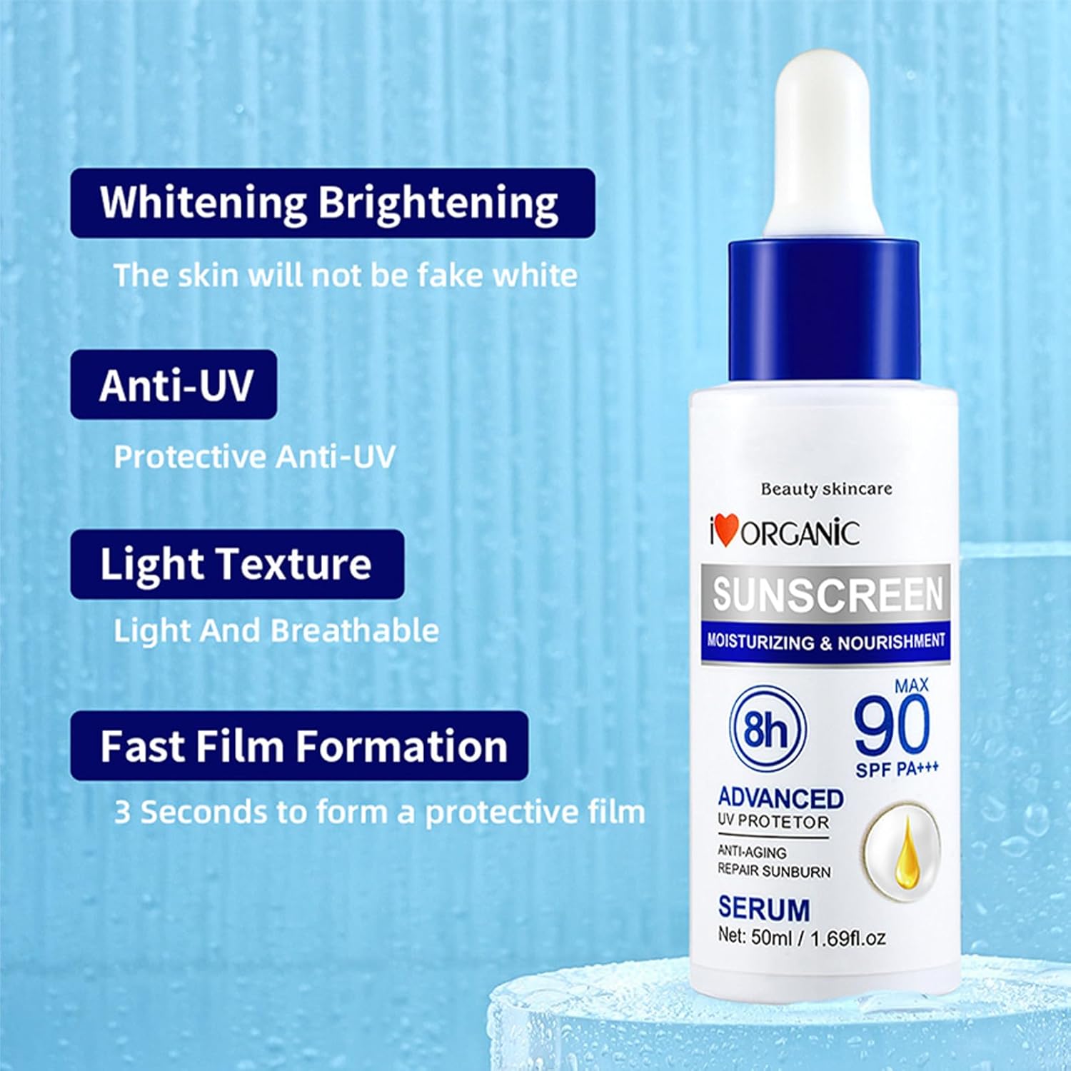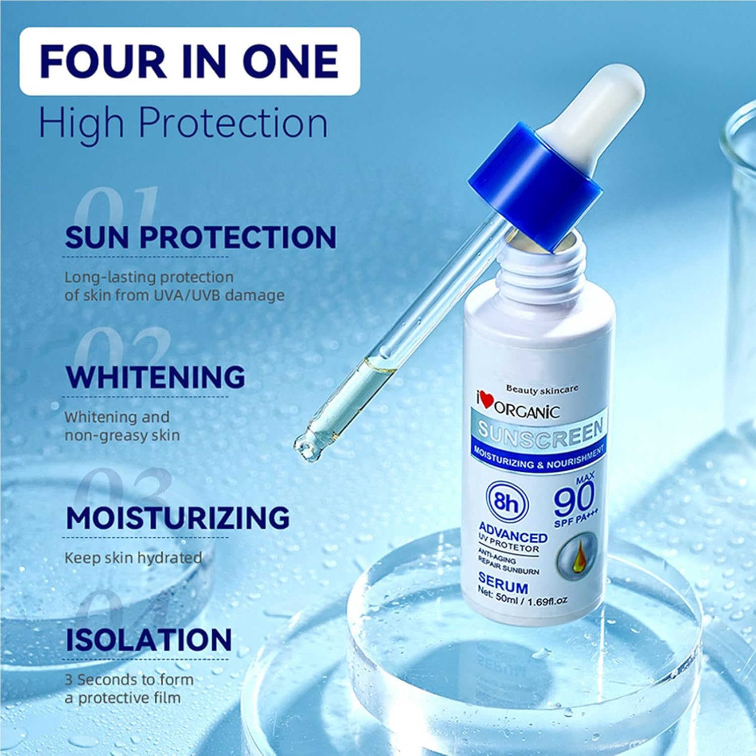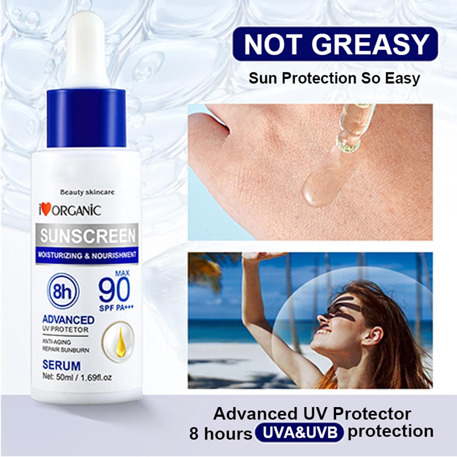 Vitamin E Sunscreen Serum, Sunscreen SPF 90PA+++, Anti-Aging Repair Sunburn Essence, Moisturizing Sunscreen Skin Care for Reduces Redness & Improves Skin, Advanced UV Protector Lotion – 50ml