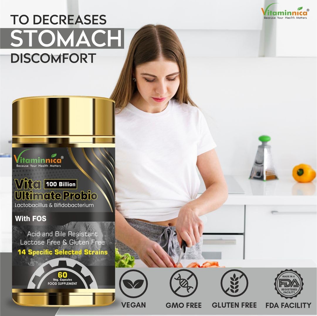 Vitaminnica Vita Ultimate Probio 100 Billion | Advanced Probiotic Blend for Gut Health, Digestive Support & Immune System Boost | 60 Capsules