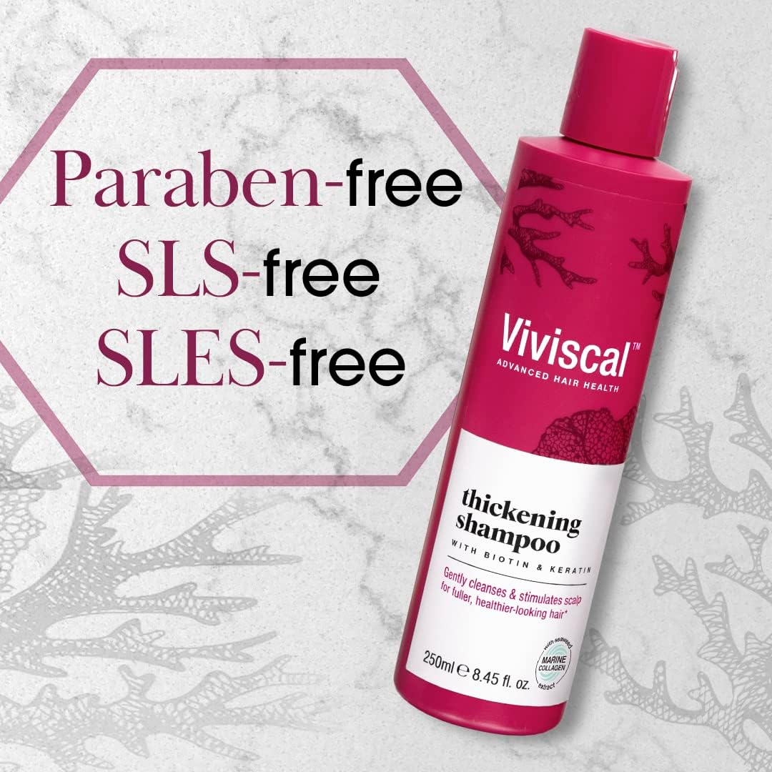 Viviscal Hair Thickening Shampoo, for Naturally Thicker & Fuller Looking Hair, Paraben Free Hair Shampoo with Biotin, Keratin & Marine Collagen Extract, for All Hair Types, 250 ml