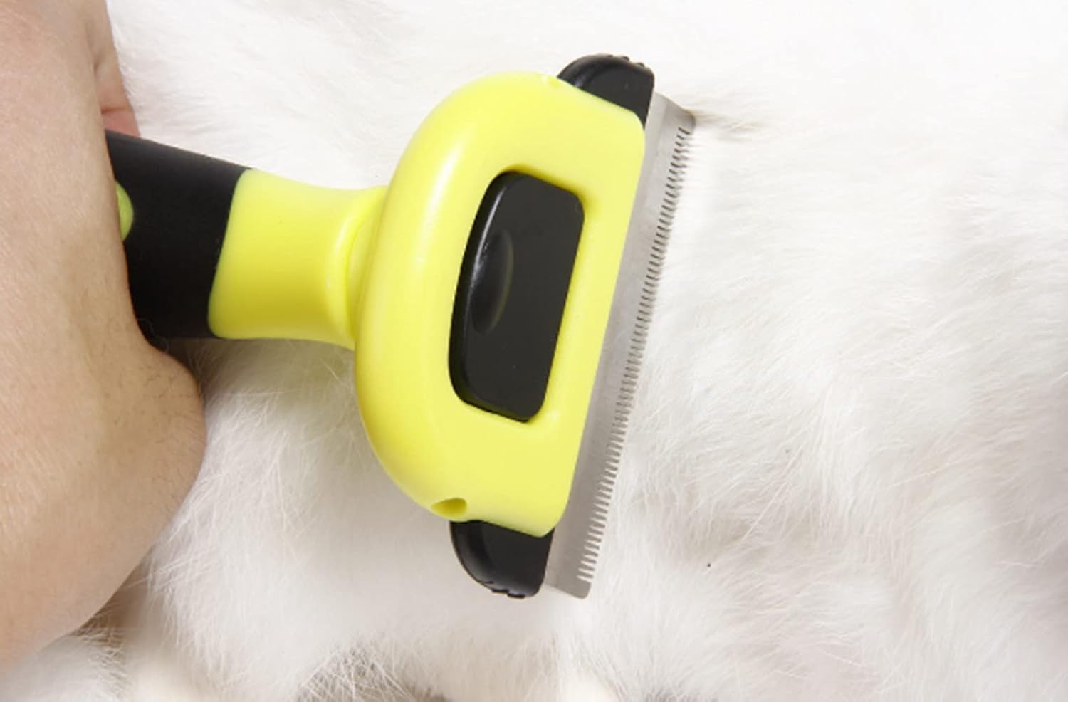 Non-slip rubber handles that are ergonomically designed for a comfortable grip and ensuring a safe deshedding experience for you and your dog or cat. Simply comb gently over your dog’s or cat’s coat, within seconds you will have a fistful of fur and within minutes you will be amazed by the amount of loss hair has been removed.