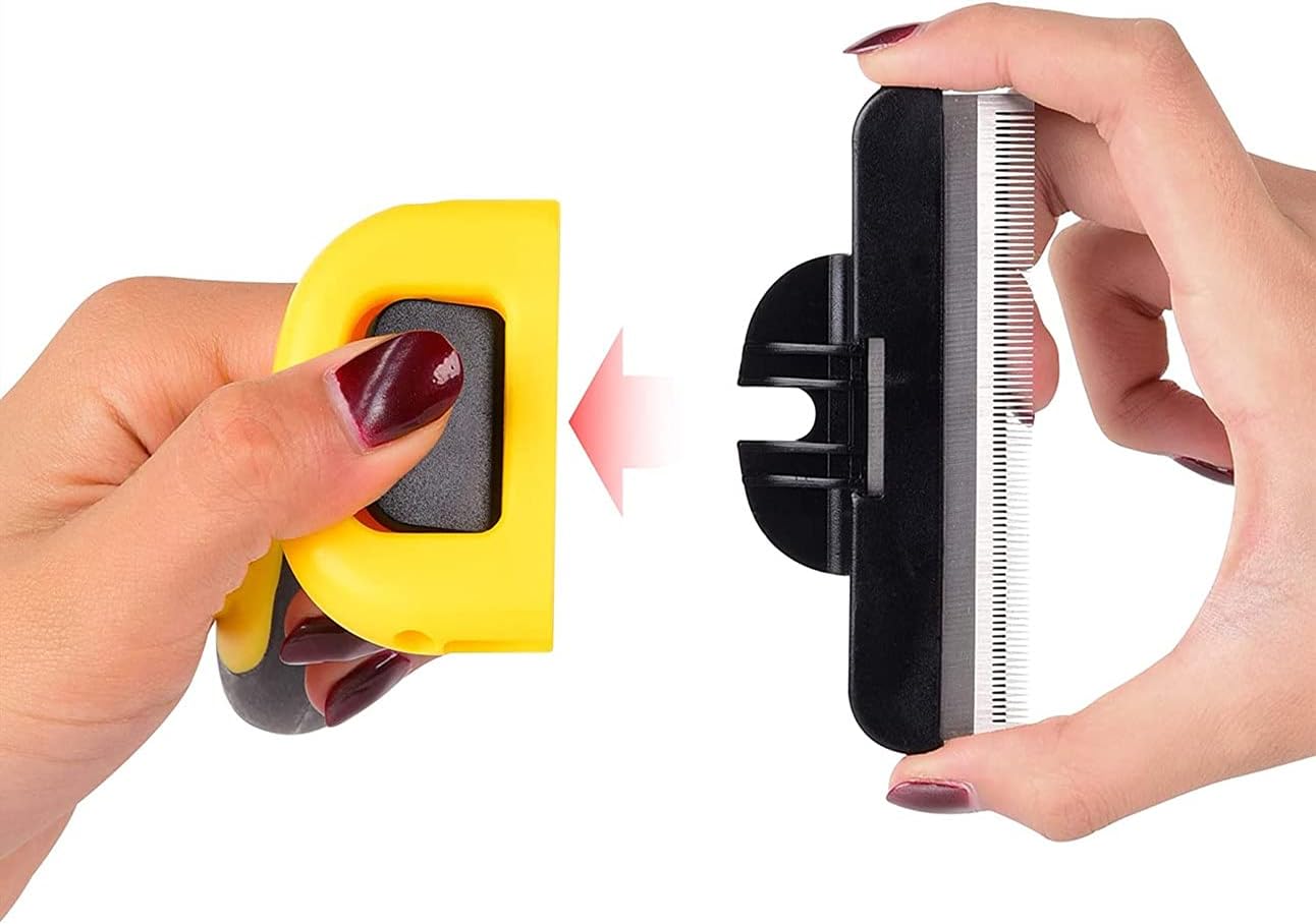 Stainless steel deShedding edge with safe blade cover reaches through topcoat to safely and easily remove loose hair and undercoat, prevent matted hair and tangles, this Quick hair remover shedding brush is better than any defur brush, rake or curry comb.