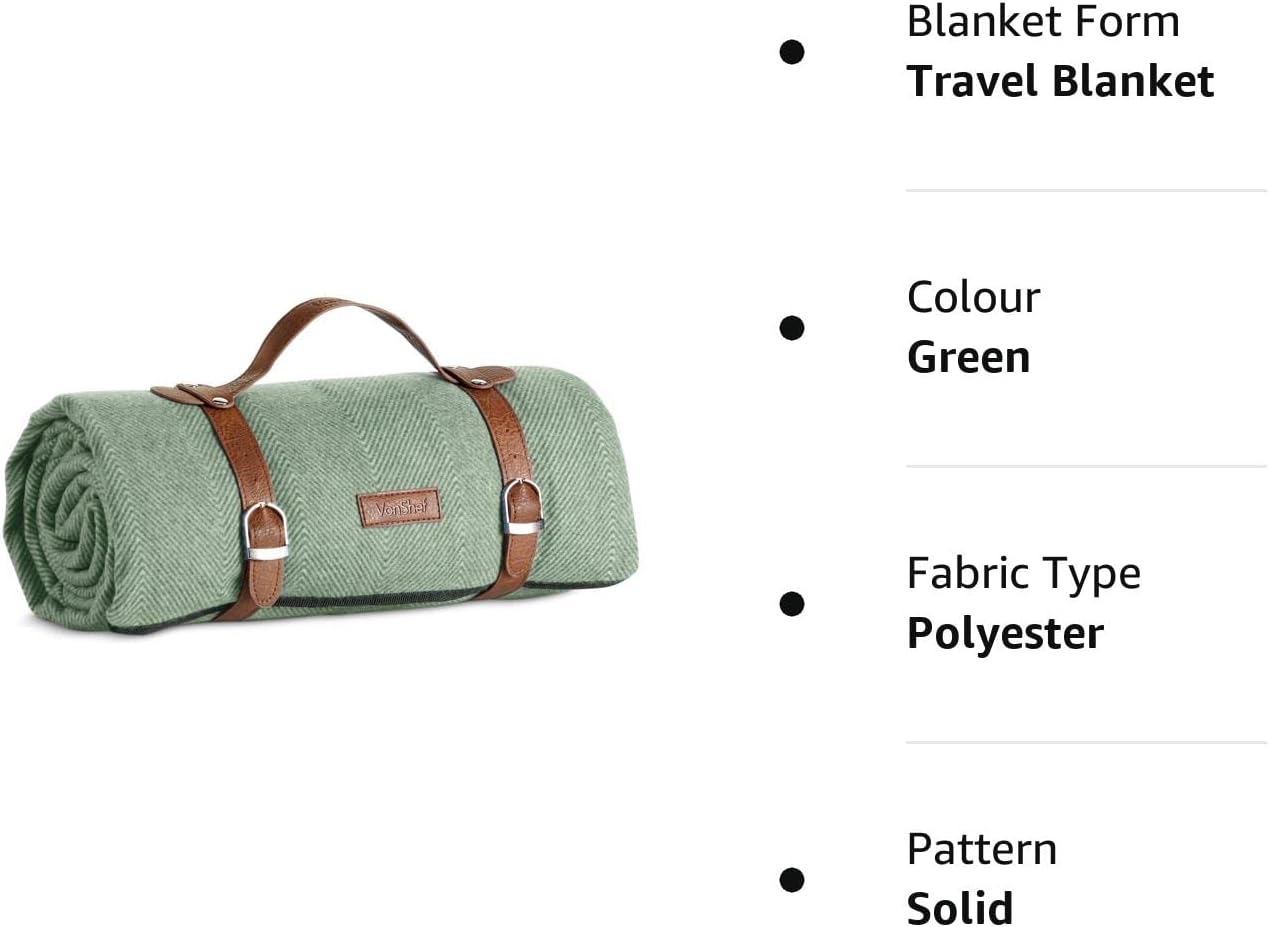 Be the first to review “VonShef Picnic Blanket, Green Herringbone Outdoor Rug with Waterproof Backing, 6 Person Weatherproof Picnic Mat with Faux Leather Handle, Water Resistant Camping Accessories, 147x180cm”