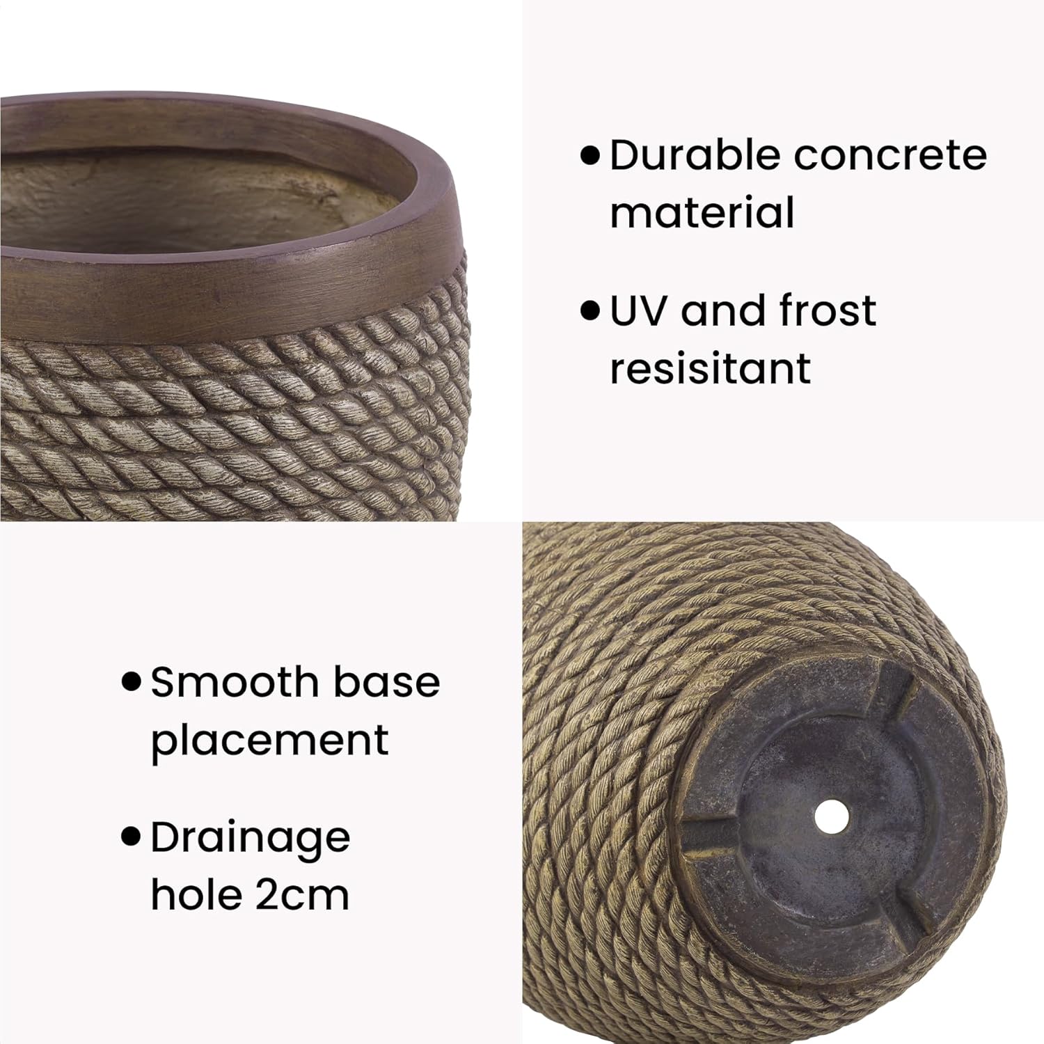 Solid concrete material protects your large plants and flowers, and breathable pot walls allow for fast plant growth