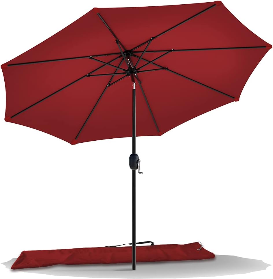 VOUNOT 2.7m Garden Parasol, Outdoor Table Tilting Patio Parasol Umbrella, with Crank Handle, Protective Cover, 8 Sturdy Ribs, Red