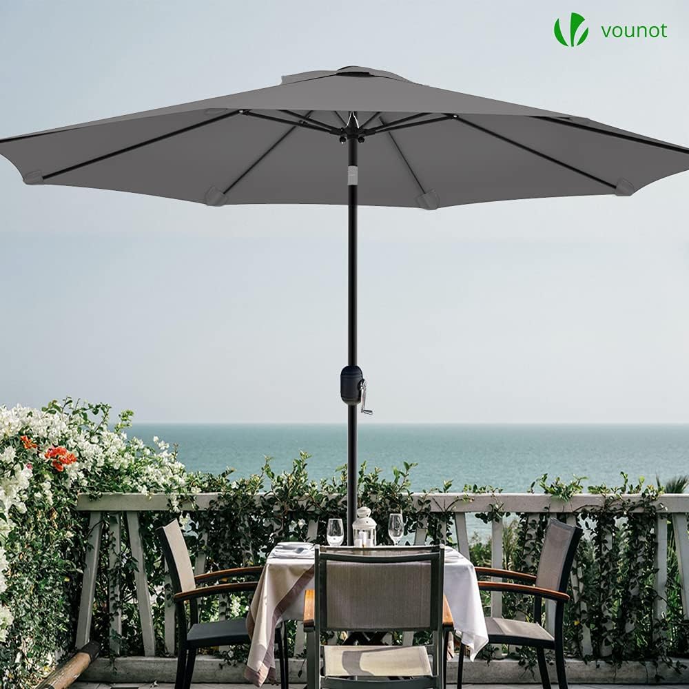 VOUNOT 2.7m Garden Parasol Umbrella with Cover, Crank and Tilting Umbrella, Sun Shade for Outdoor, Patio, Garden, Grey
