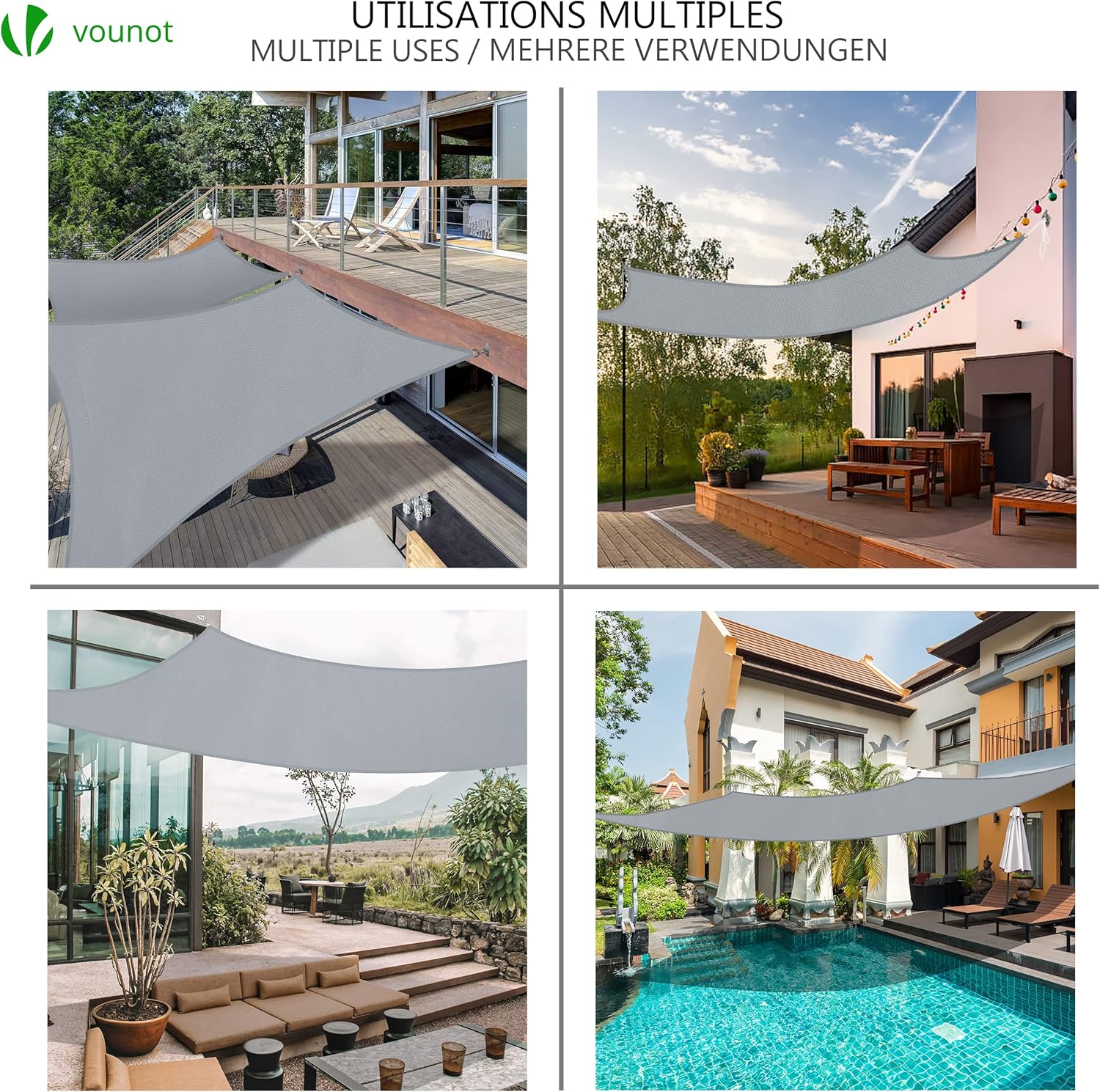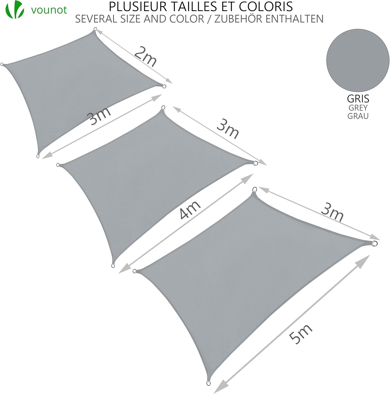 VOUNOT 3m x 5m Sun Shade Sail, Waterproof Outdoor Garden Sails Canopy Patio Party Sunscreen Awning 98% UV Block with Free Rope, Grey