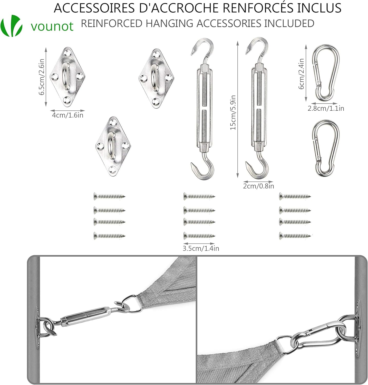 VOUNOT Sun Shade Sail Triangle 5x5x5m with Fixing Kit, HDPE, UV-Protection Breathable Awning Canopy for Garden Outdoor Patio, Grey