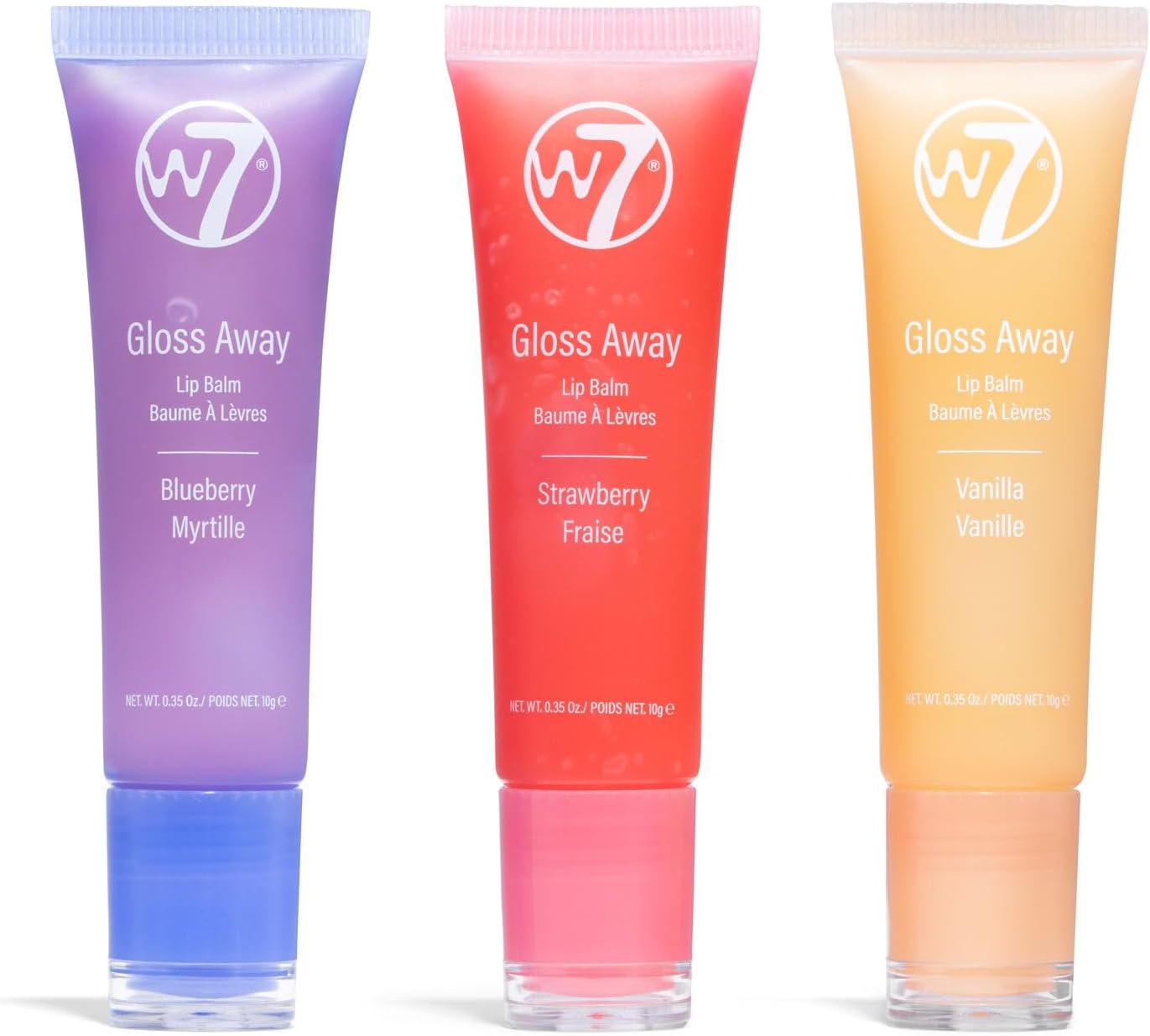 W7 Gloss Away Lip Balm Trio – 3Pcs – Nourishing Lips Balms With Shea Butter – Blueberry, Vanilla, Strawberry