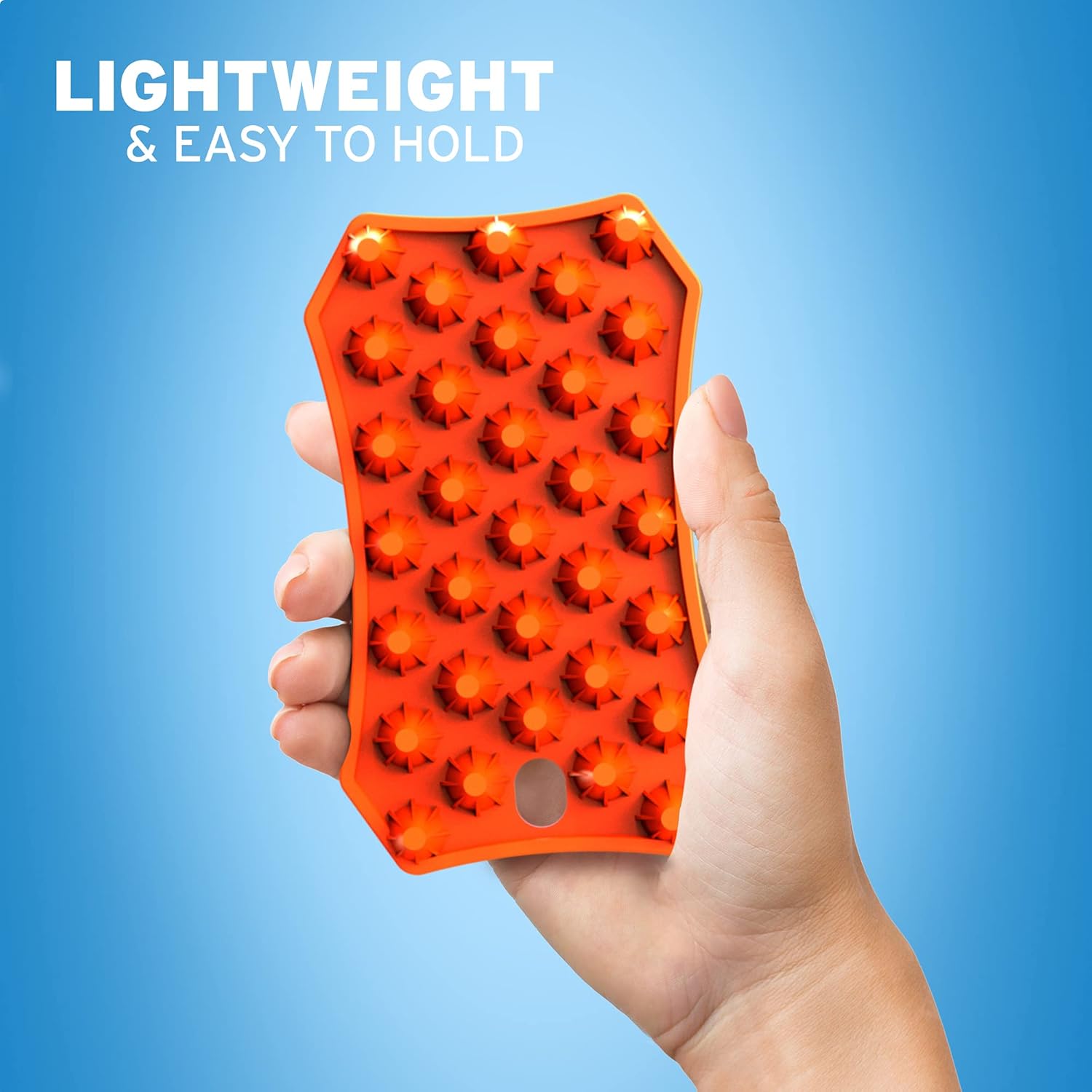 The soft rubber teeth scrub away dirt efficiently, dead skin and loose fur making it an excellent pet brush for grooming and bathing. It leaves pet skin clean and helps restore sheen in the coat. The Pet Sheddy Brush also increases the effectiveness of shampoo lathering, meaning less product required and achieving a deeper clean than shampooing alone.