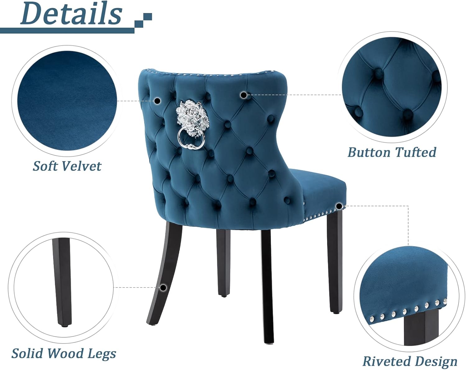 🍴【Modern Style】: The dramatically lion knocker backrest design is a huge innovation with beautiful button-tufted details and riveted design. Wahson dining chairs bring a touch of refinement to your dining area.