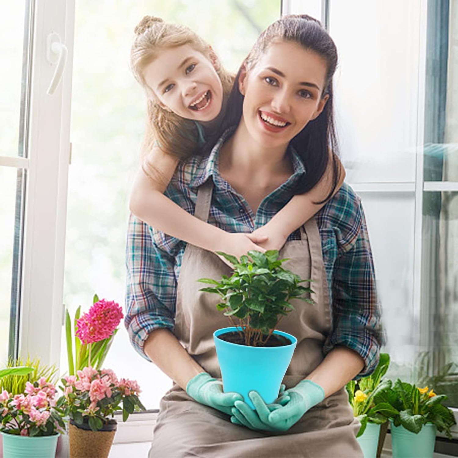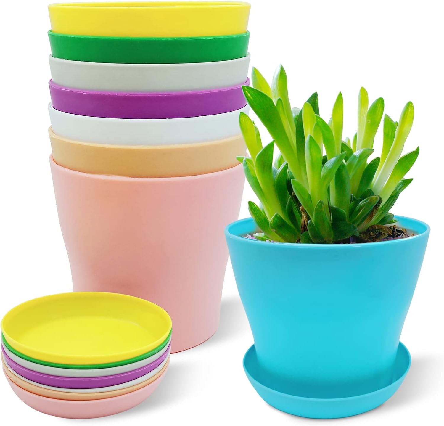 WAIZHIUA 8Pcs 14cm Plant Flower Pots Colorful Plastic Plant Pots Indoor Flower Pots Plant Container Planters with Trays for Office House Succulent Fruit Vegetable Seedlings Transplanting, 8 Colors