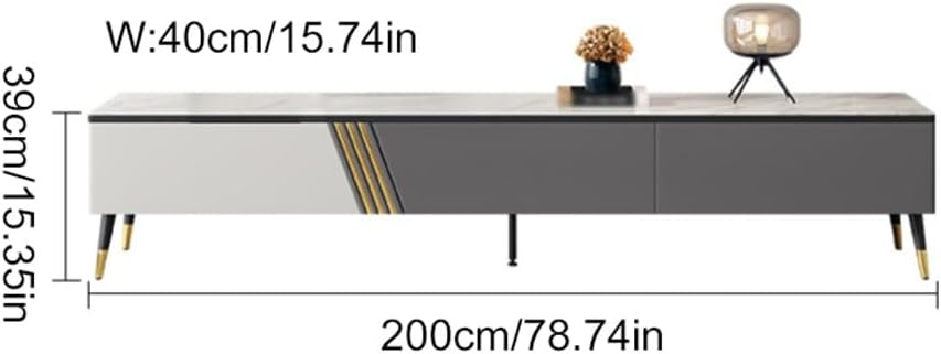 WANSLO Cabinet 78.7 Inch Slate Marble Countertop TV Stand with 3 Large Space Storage Drawers Living Room Entertainment Center Modern TV Cabinet
