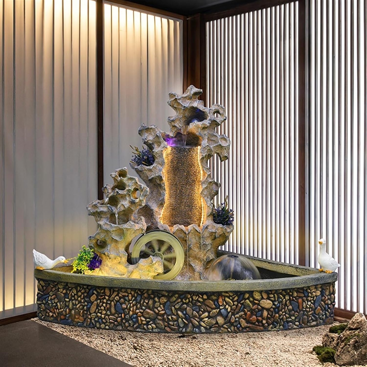 WAOCEO Floor Water Fountain Chinese Courtyard Rockery Water Decoration, Fish Pond Balcony Garden Taihu Stone Landscape Decoration, Into The Outdoor Layout Landscape Water Fountain Garden Waterfall