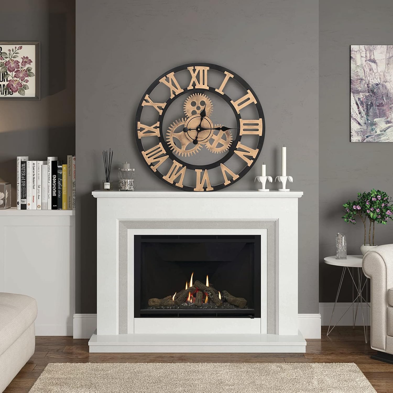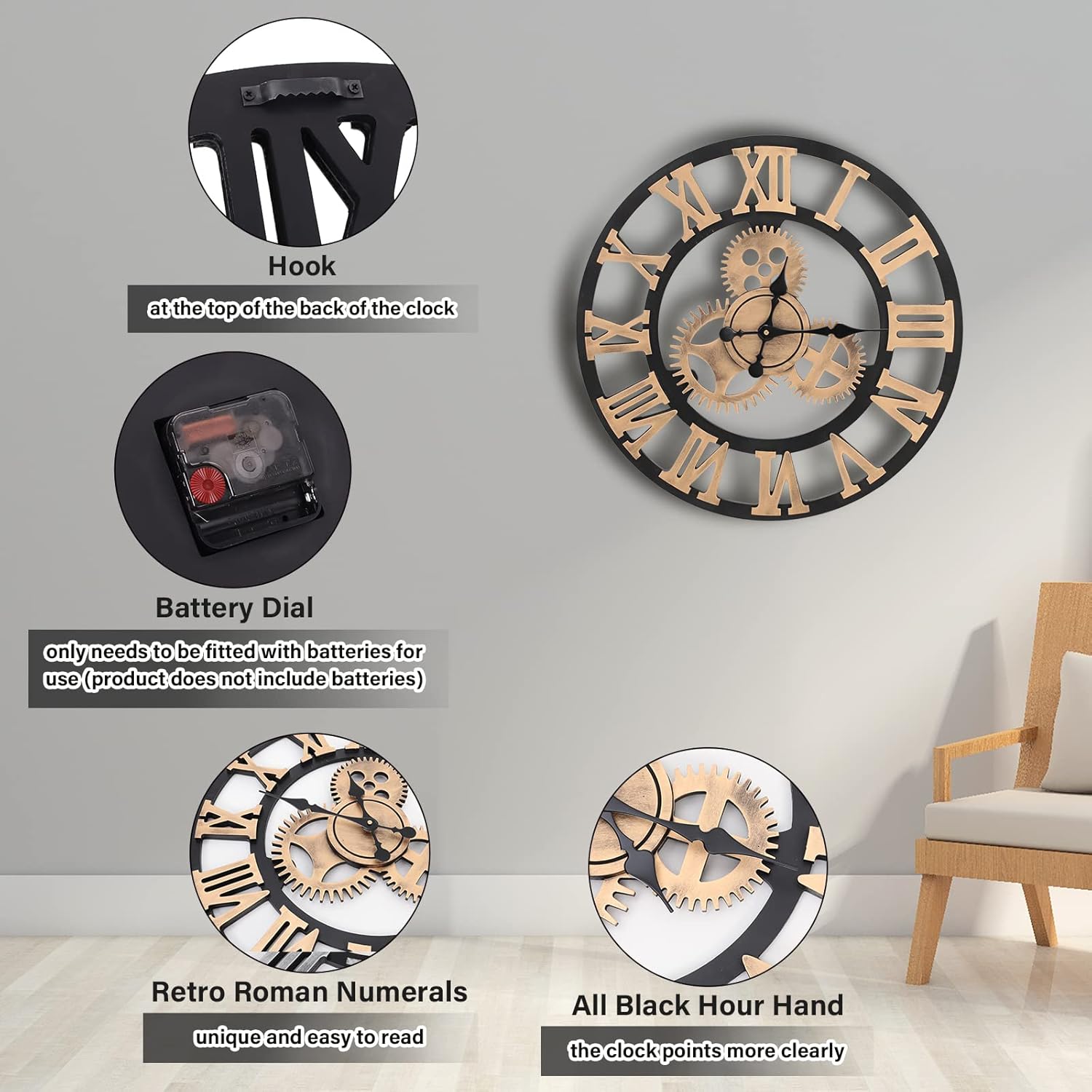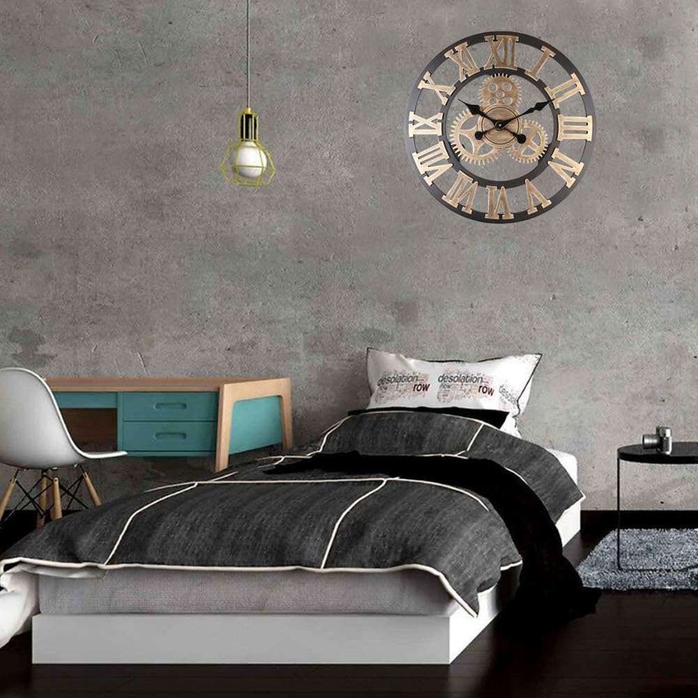 VINTAGE APPEARANCE – Comes with the gear design, Roman retro letter make this wall clock will meet various of decoration style. Perfect wall clocks for living room, bedroom, study room, office, cafe, bar etc. Suitable for domestic and commercial use.