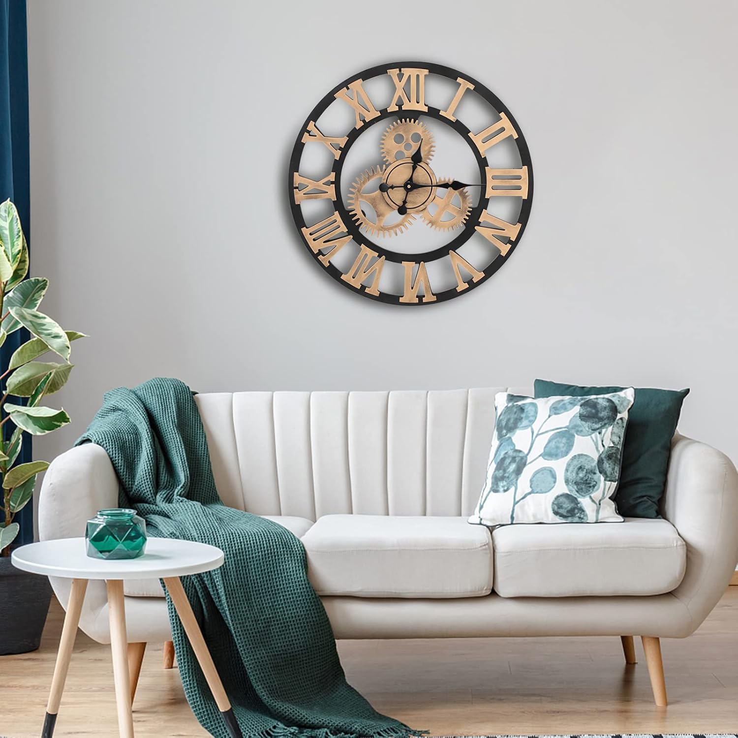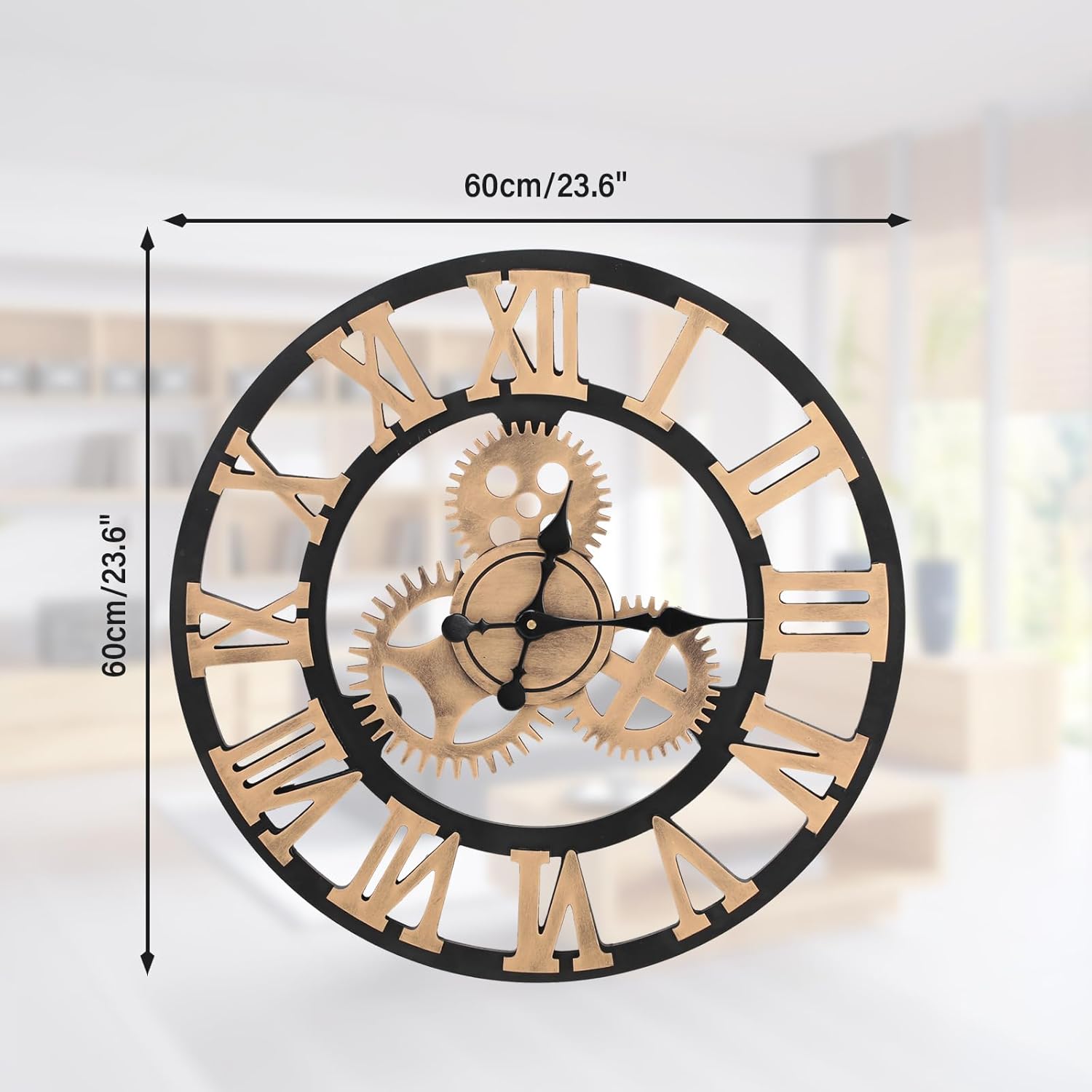 Warmiehomy 60cm Large Wall Clock,3D Gear Vintage Industrial Silent Roman Numeral Wall Clock for Living Room,Bedroom,Office, Restaurant,Hotel,Cafe Decoration,Gold