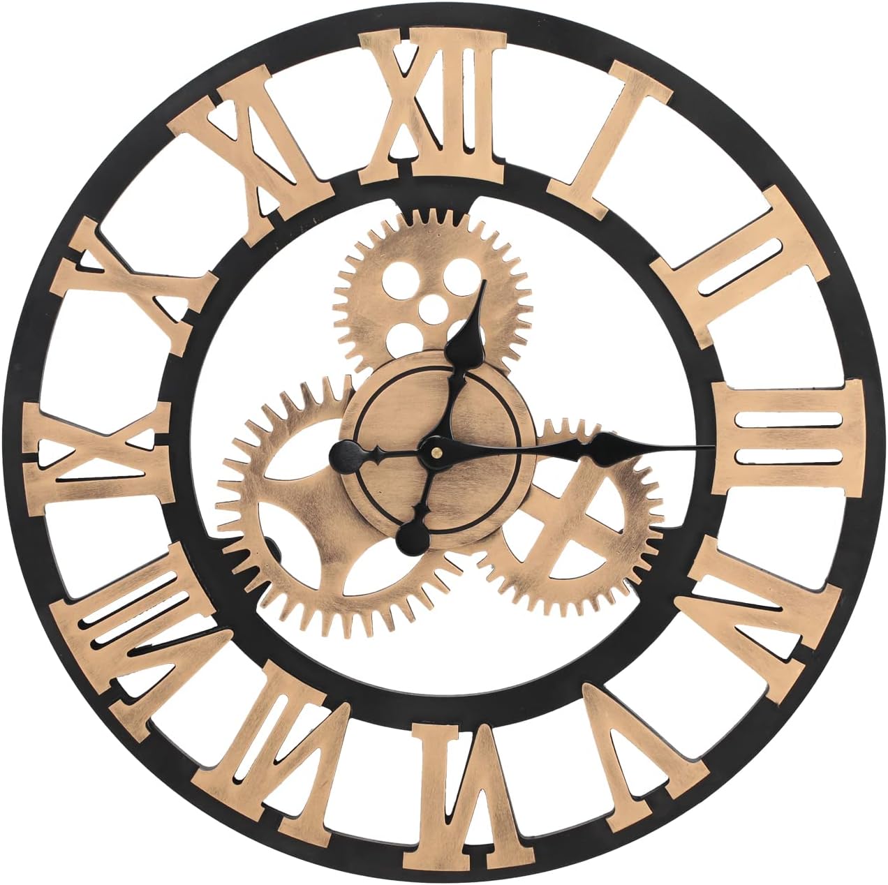 Warmiehomy 60cm Large Wall Clock, 3D Gear Vintage Industrial Silent Roman Numeral Hanging Clock for Home, Office, Cafe Decoration