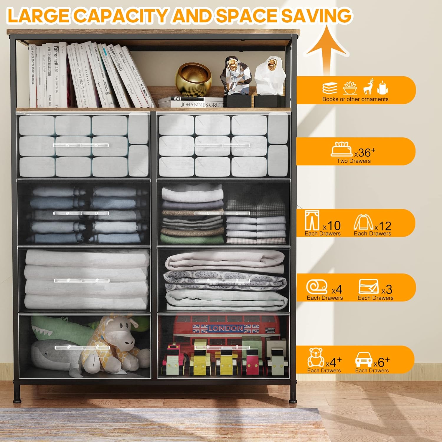 WARM&LOVE Fabric Chest of Drawers, Chest of Drawers for Bedroom, Dresser with 8 Drawers