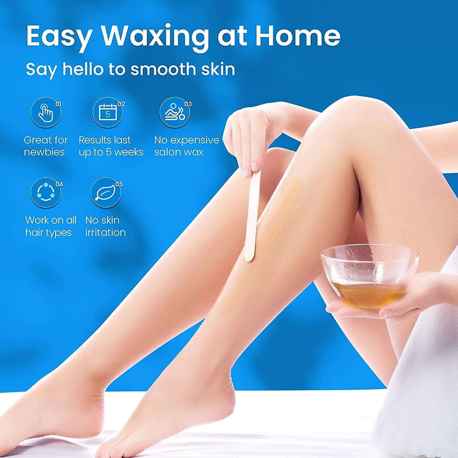 Efficient Waxing Kits: Waxing hair removal extracts hair from the root, slowing hair growth allowing skin to stay hairless for 3-6 weeks. Its removes unwanted hair effectively, quickly, and painlessly, making skin clear and bright. This at-home waxing kit provides convenience and is an ideal waxing kit for hair removal needs for men, women, and any waxing spa salon.