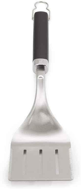 WEBER PREMIUM BBQ SPATULA: This precision Weber spatula, for BBQs, grills and stoves, has a 3-sided bevelled edge for easy approach and precise flip. Great for meat, seafood and vegetables