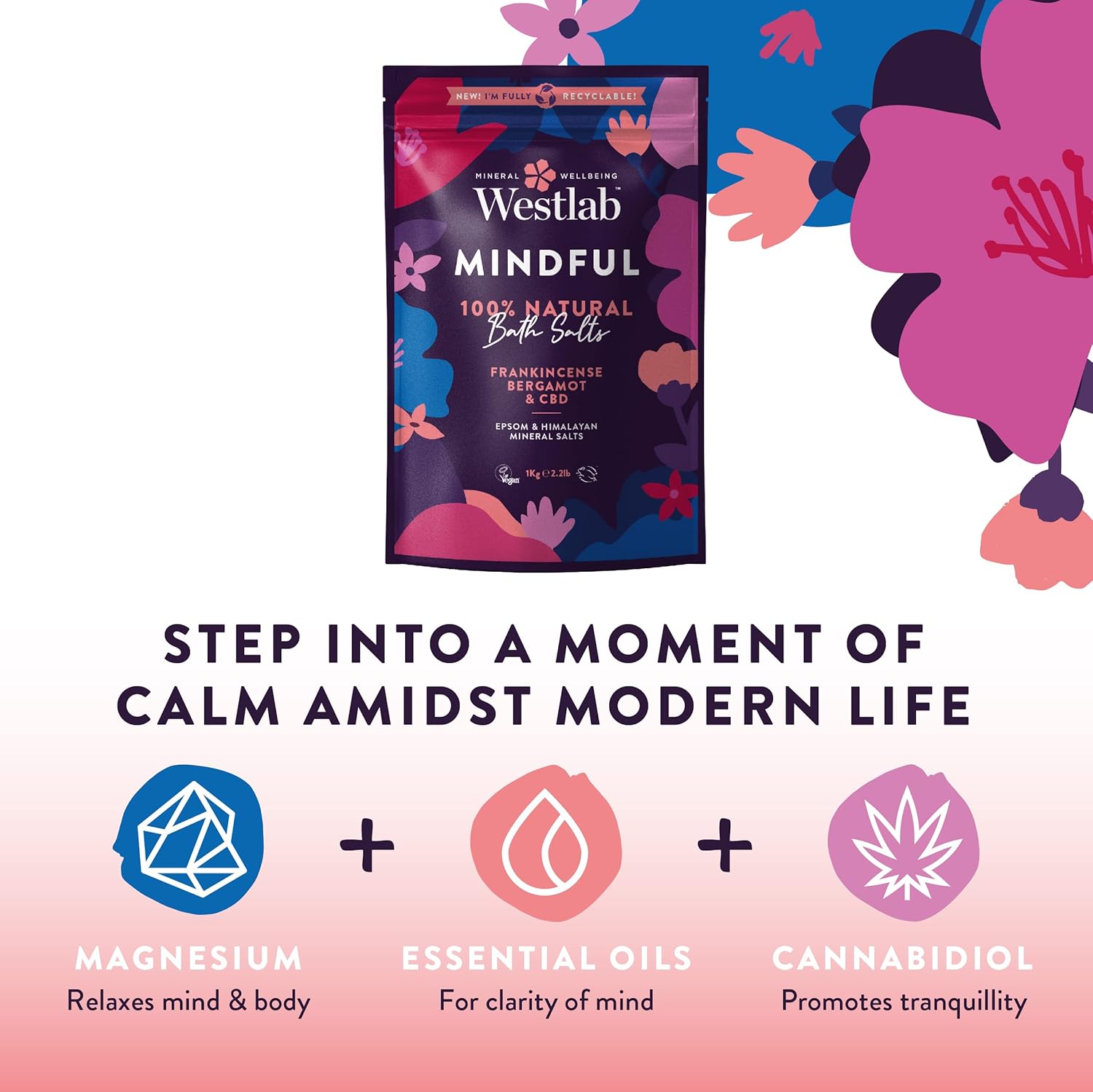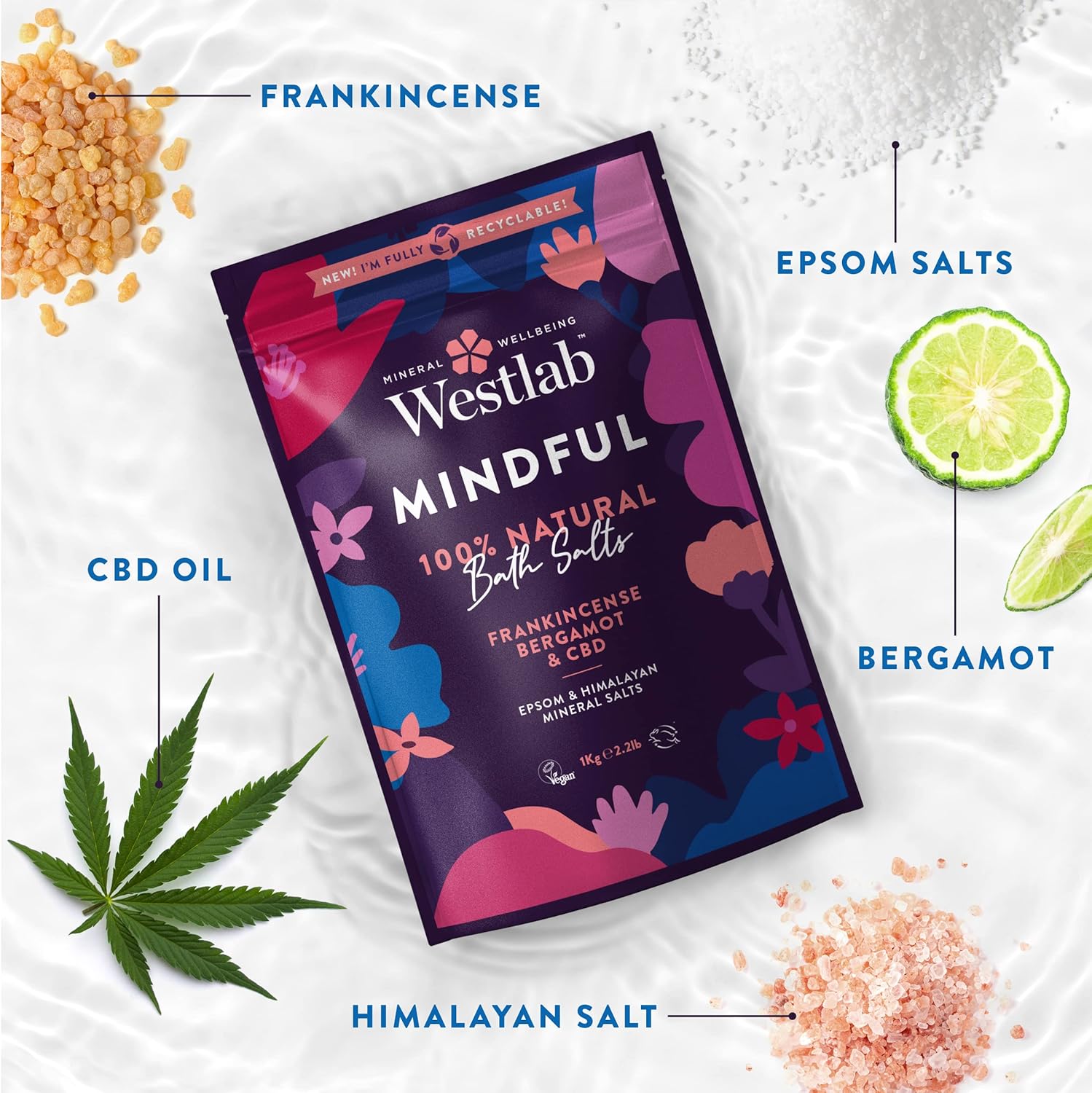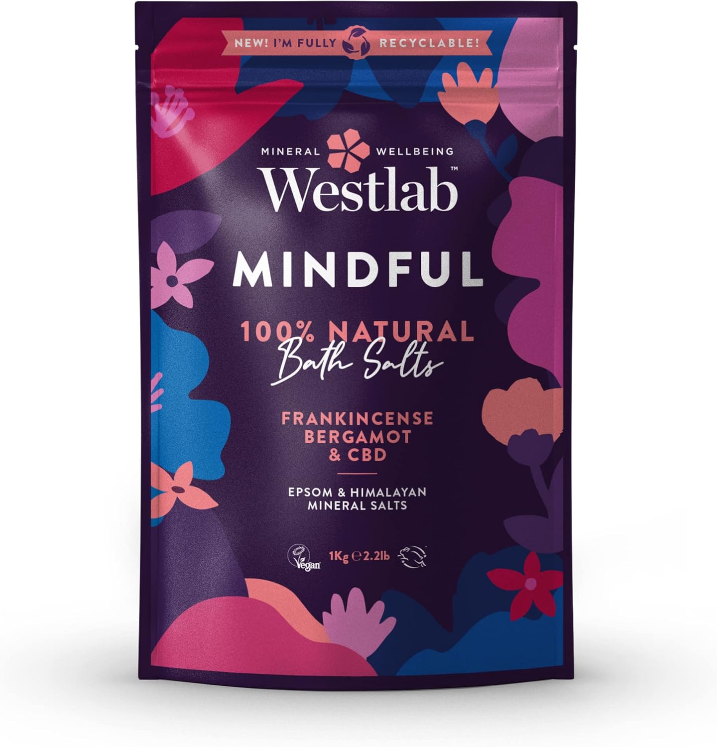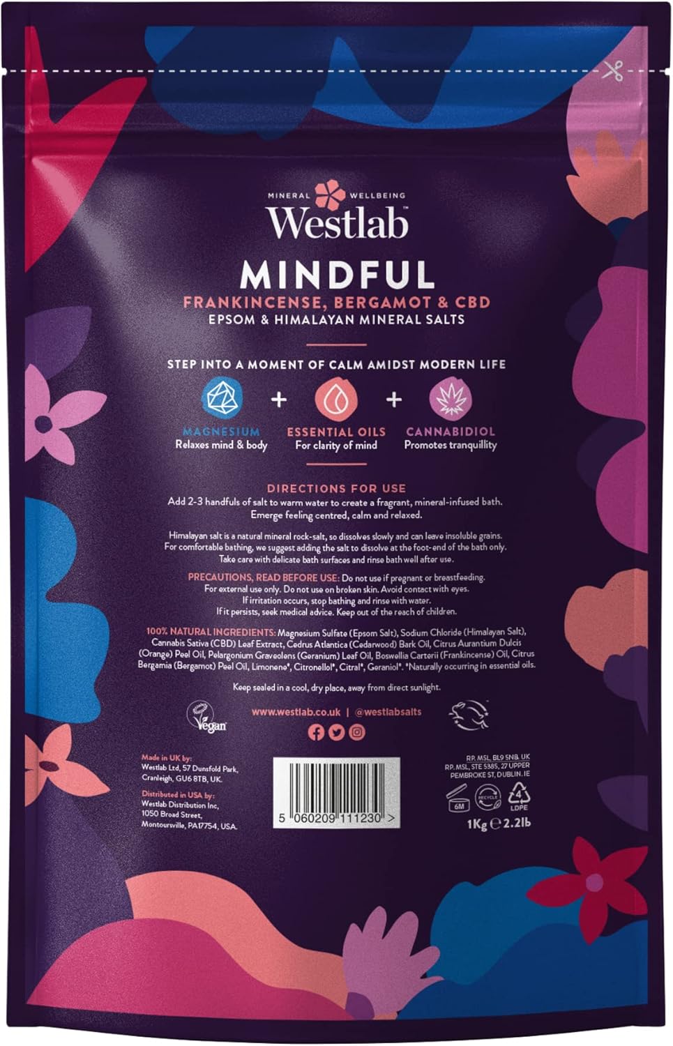 Westlab – 1kg – Mindful Epsom & Himalayan Salts Infused with Frankincense & Bergamot – For Calming and Soothing – 1kg Resealable Pouch