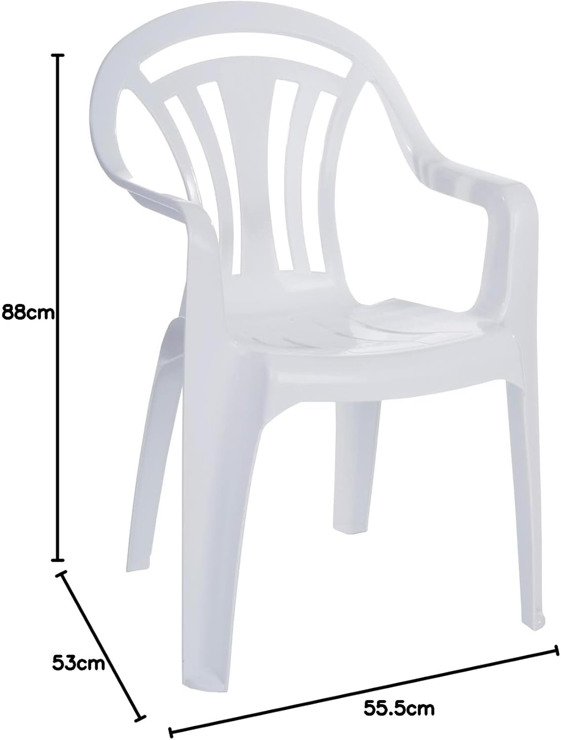 Garden chair made from strong and durable plastic which is perfect for using outdoors in the garden, on the patio, decking or indoors in conservatory, kitchen or dining room. Comfy chairs made with low back seat design for a relaxing sitting experience that supports posture and back. 1 garden seat sized at 88 x 53 x 55.5, which is easy to store and stack. Made from polypropylene that is easy to maintain. Simply wipe down, clean, stack and store. Garden seat perfect for outdoor activities, BBQs, parties or just relaxing in the sun.