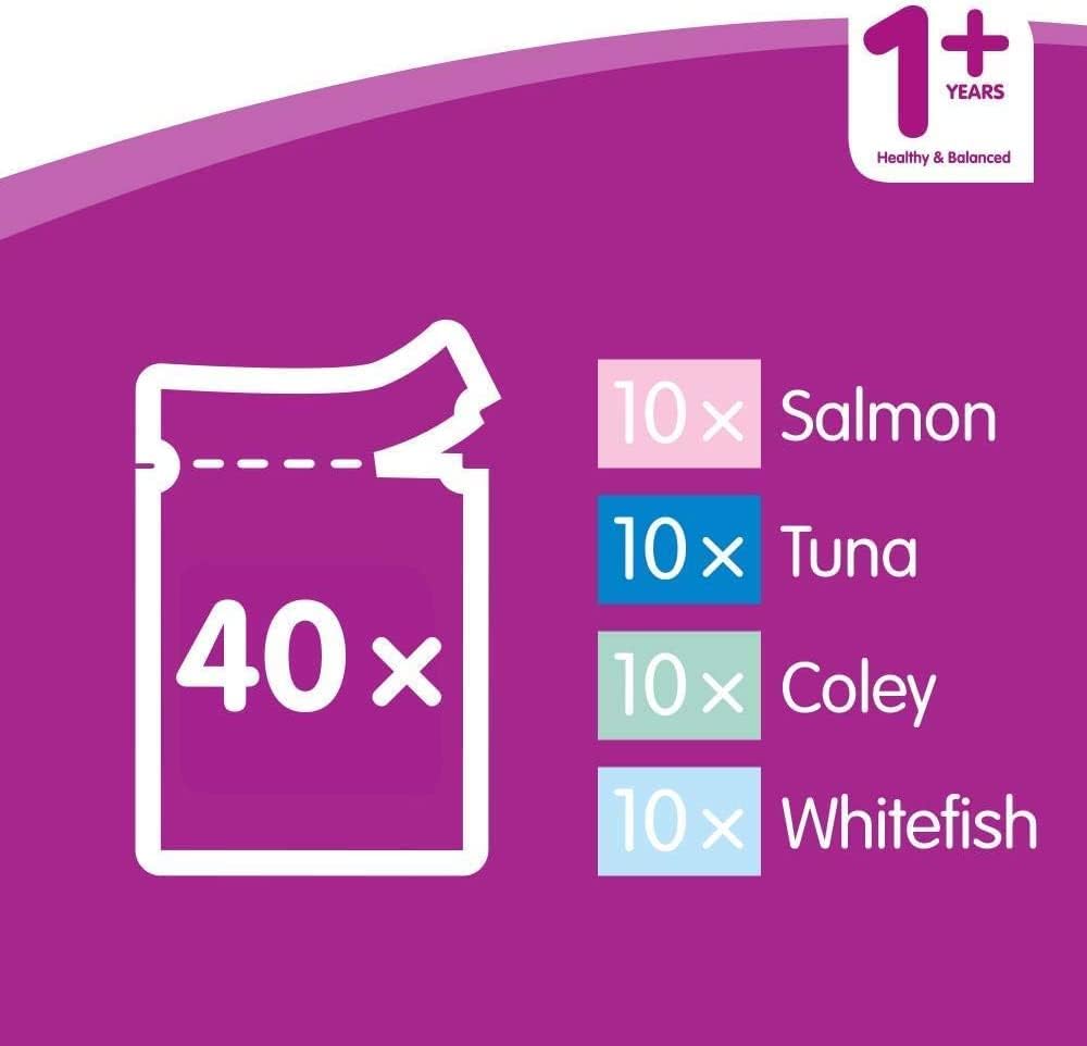 Whiskas Wet Cat Food for Adult Cats Aged 1+, Fish Selection in Jelly, (40 x 100 g)