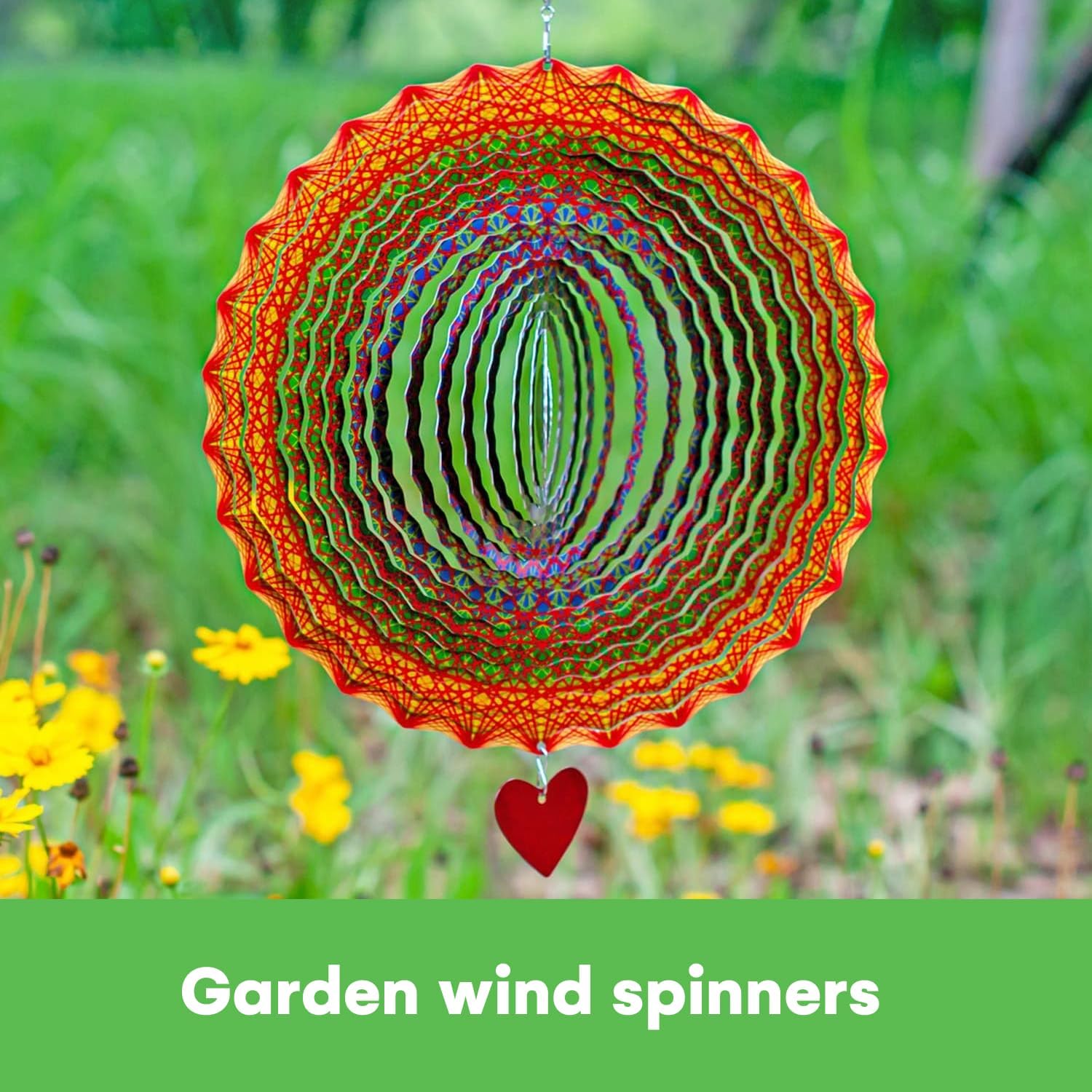 Size – This stainless steel mandala garden spinner measures 30 centimeters in diameter with an added 2-inches for the heart pendant