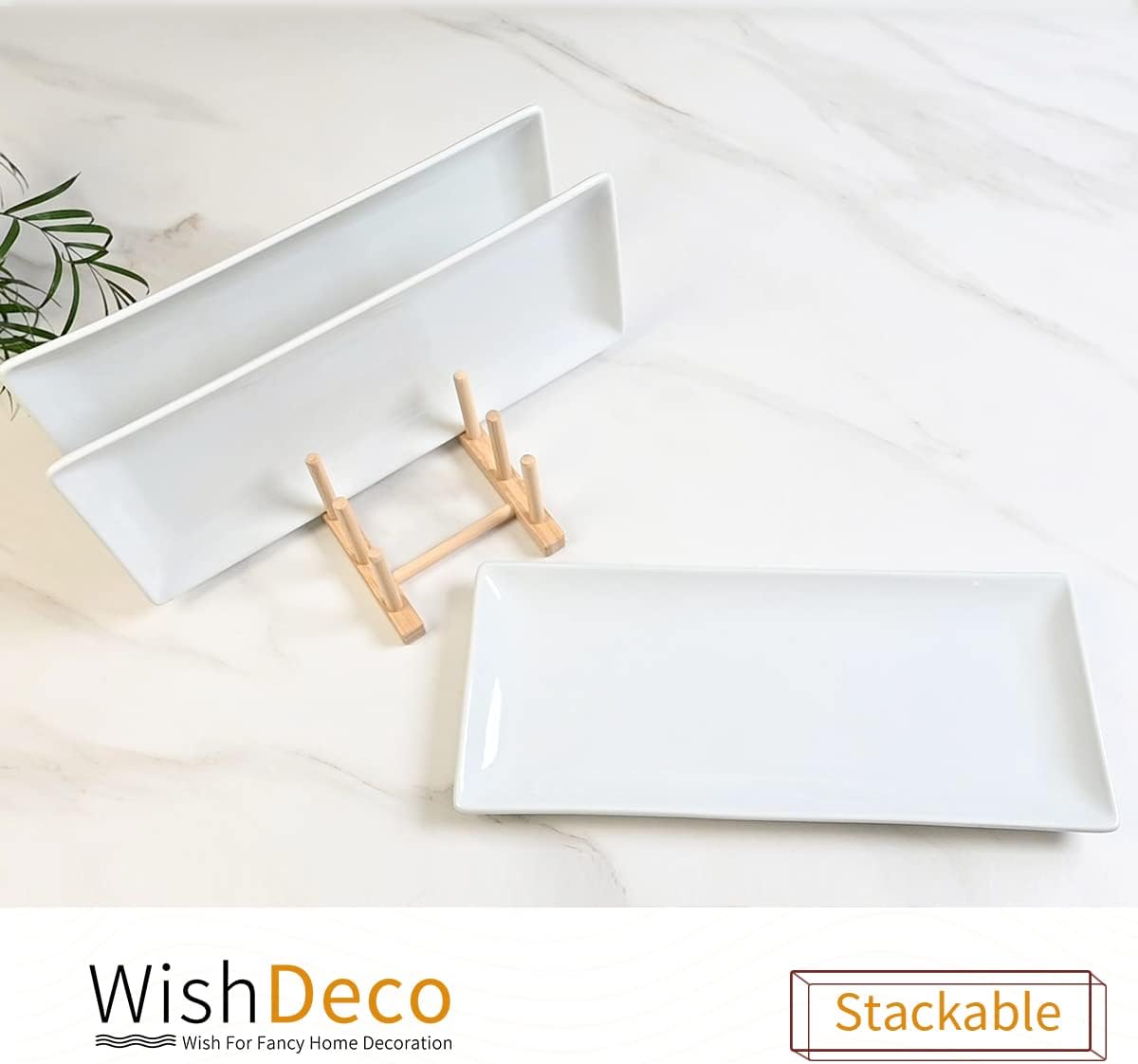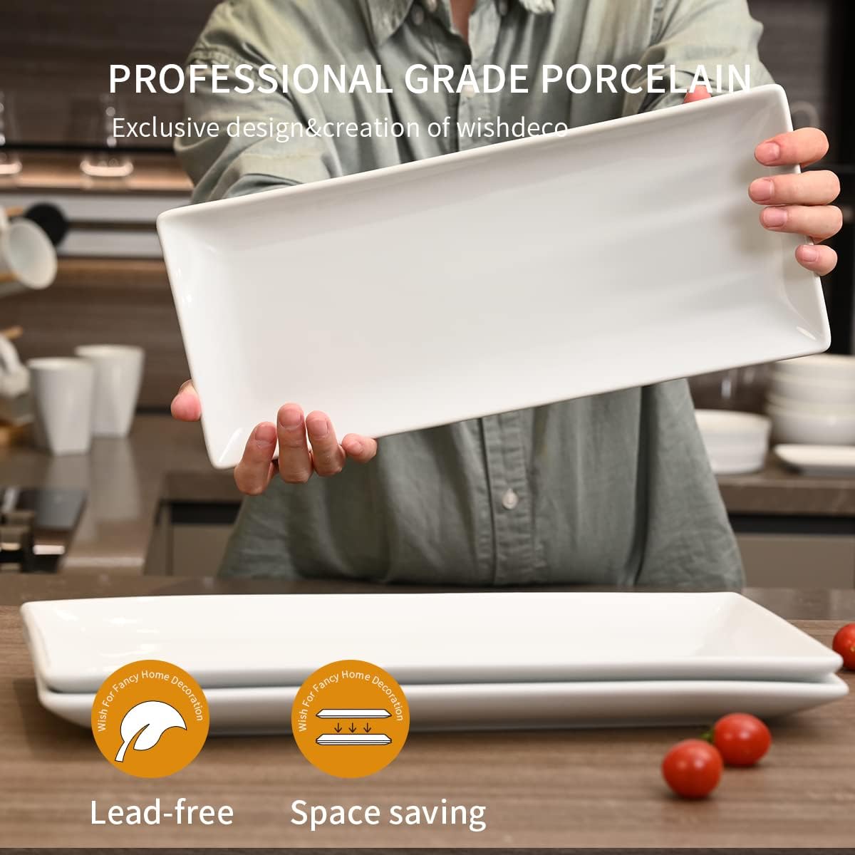 WishDeco Ceramic Serving Platters Set of 3, White Rectangular Plates, 36cm/14 inch Large Serving Trays, Porcelain Serving Dishes, Party Platters for Dessert, Buffet, Snack, Steak, Fruit