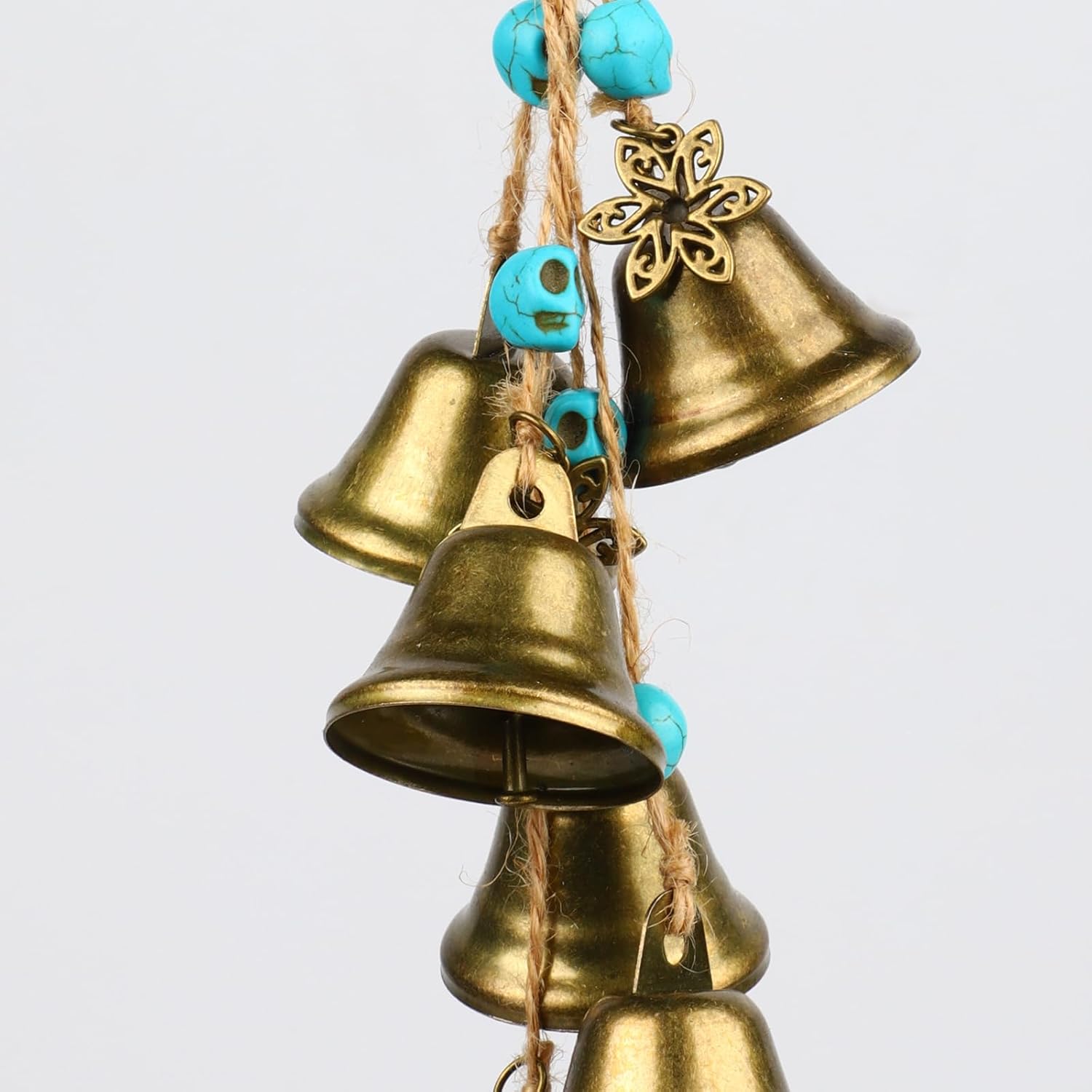 🔔【WITCH BELLS】: The package contains a string of witch bell protection door hangers, consisting of 6 bells, vintage master key, blue skull, and copper flower elements, which makes it a great witchy decorating ideas to your home, garland or sacred space.