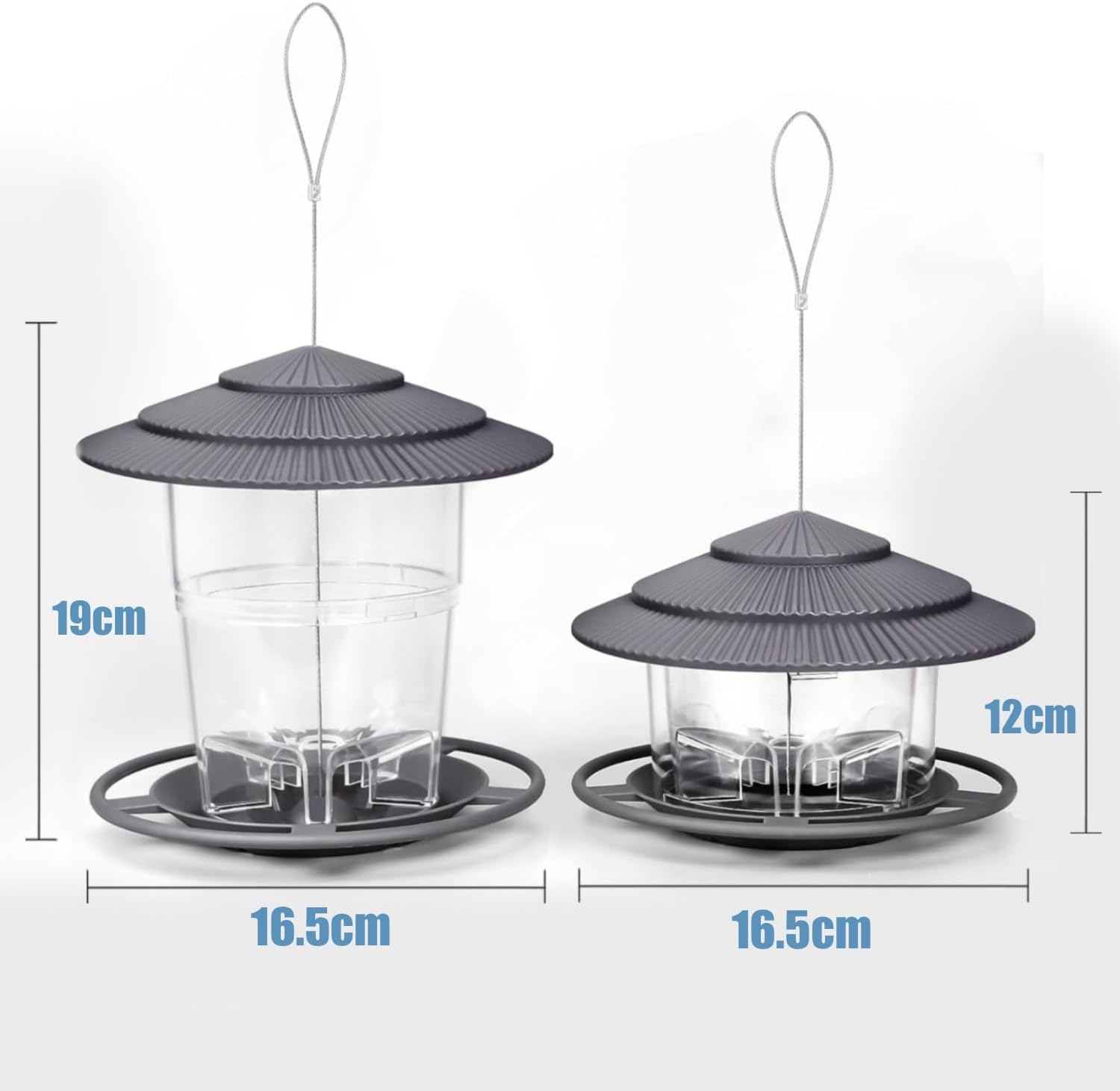WLLKOO Bird Feeders for Outdoors, 2 Pack Bird Feeder Outside Hanging, Adjustable Feeder with Sturdy Wire and Roof, Plastic Bird Feeder for Garden, Backyard, Terrace