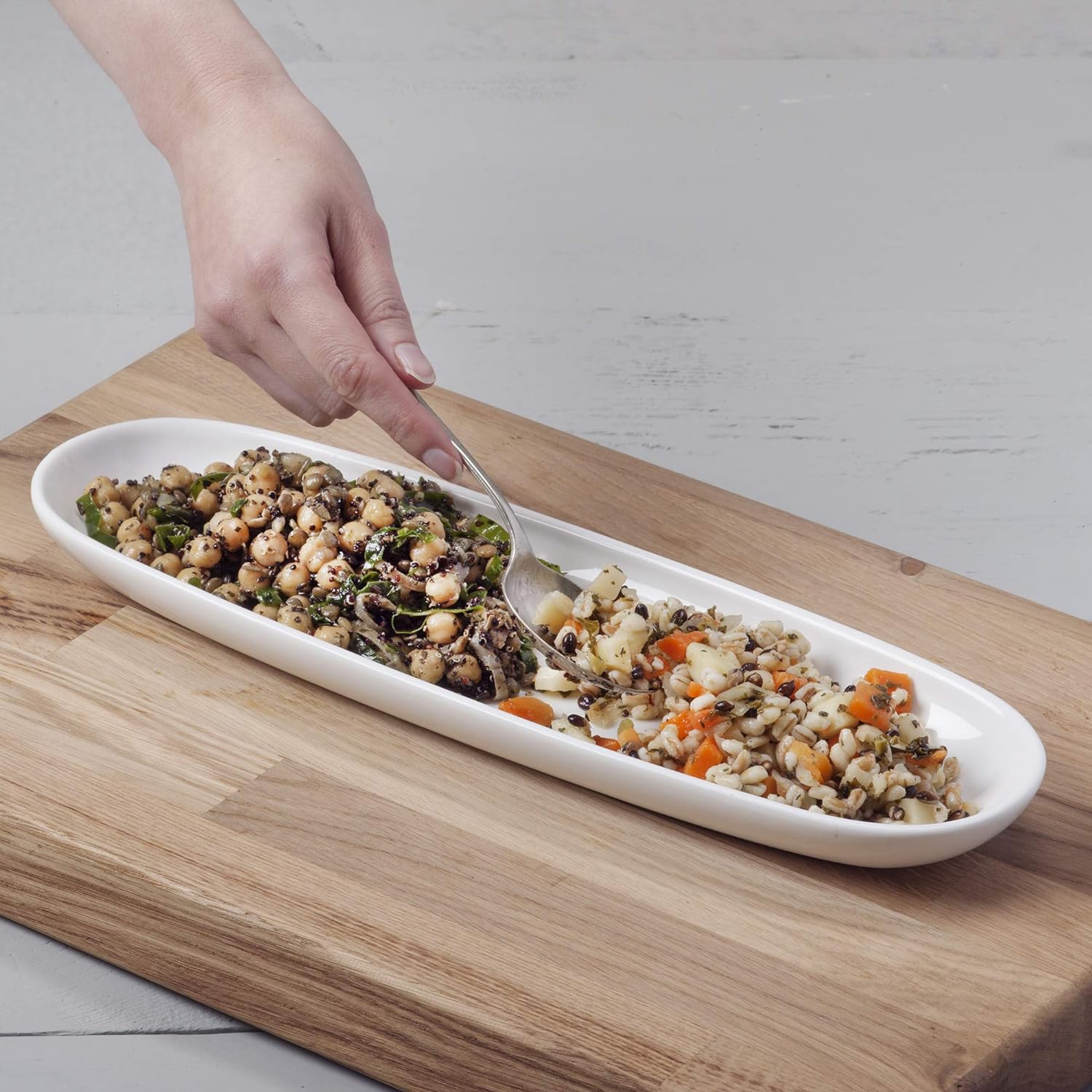 Our Wm Bartleet & Sons English designed premium quality white porcelain traditional long party serving plate is ideal as a table or party centrepiece for serving bread, French stick, baton, vegetables, biscuits, sushi, snacks, nibbles and hors oeuvres.