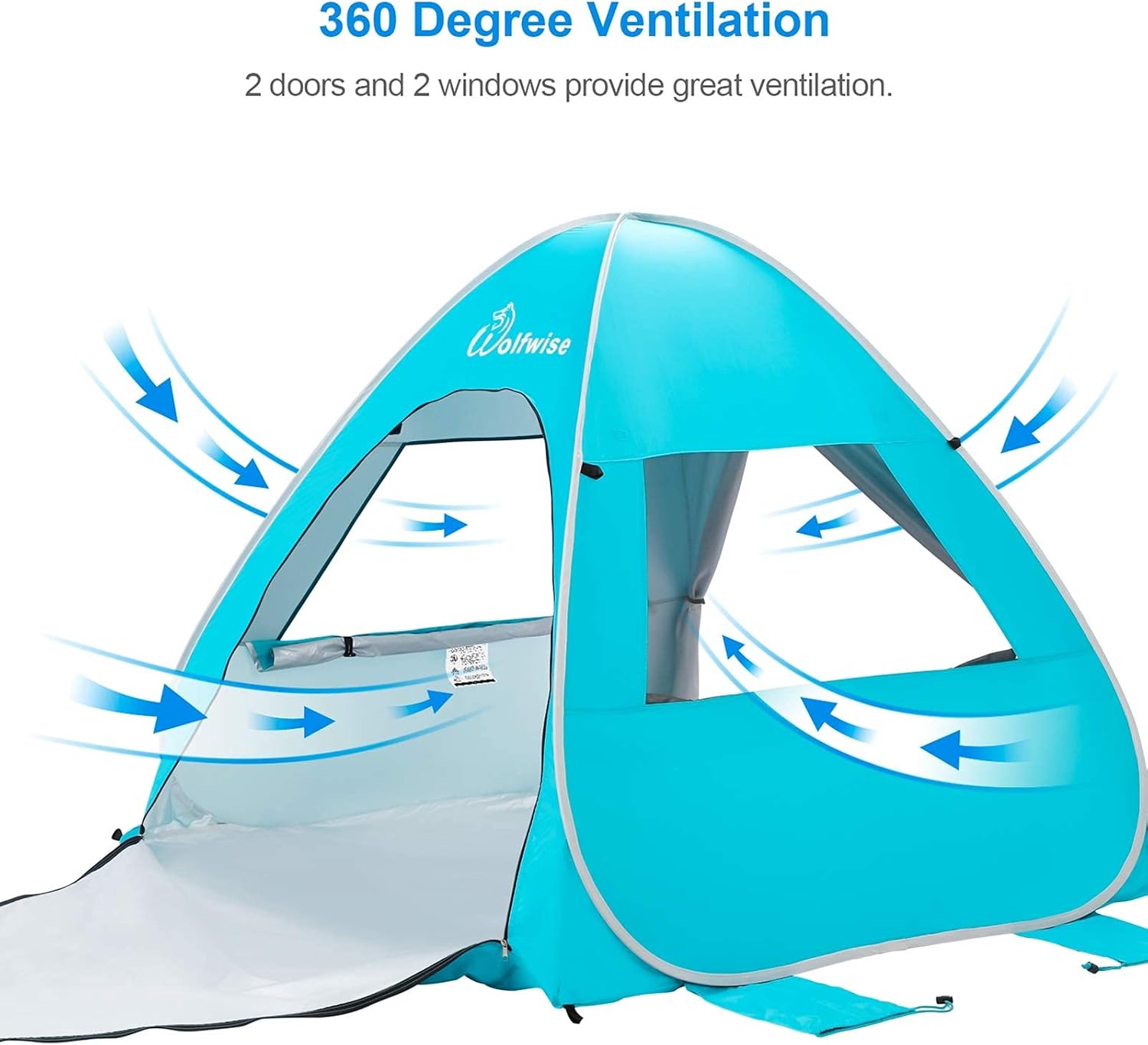 WolfWise UPF 50+ Easy Pop Up Beach Sun Shelter Tent Portable Baby Canopy Quick Instant Automatic Sport Umbrella Sun Shade Blue Medium
