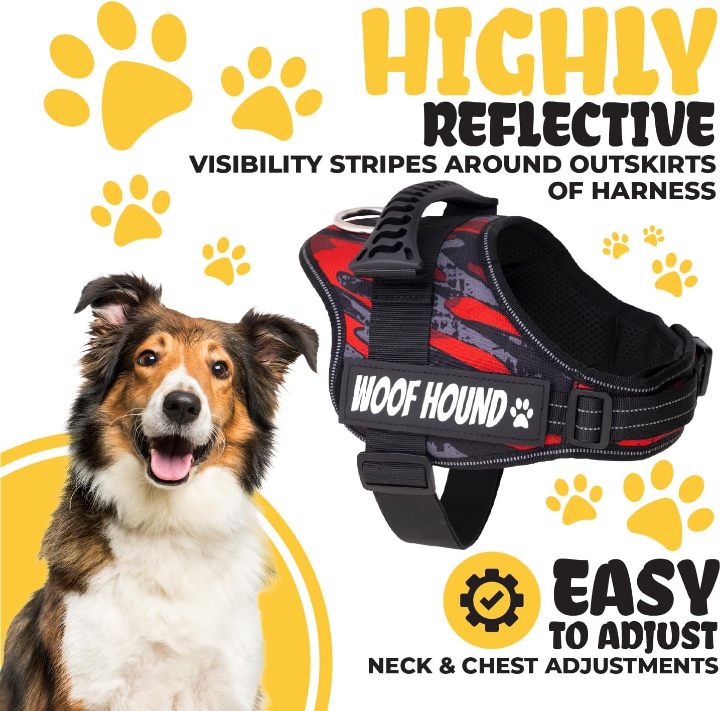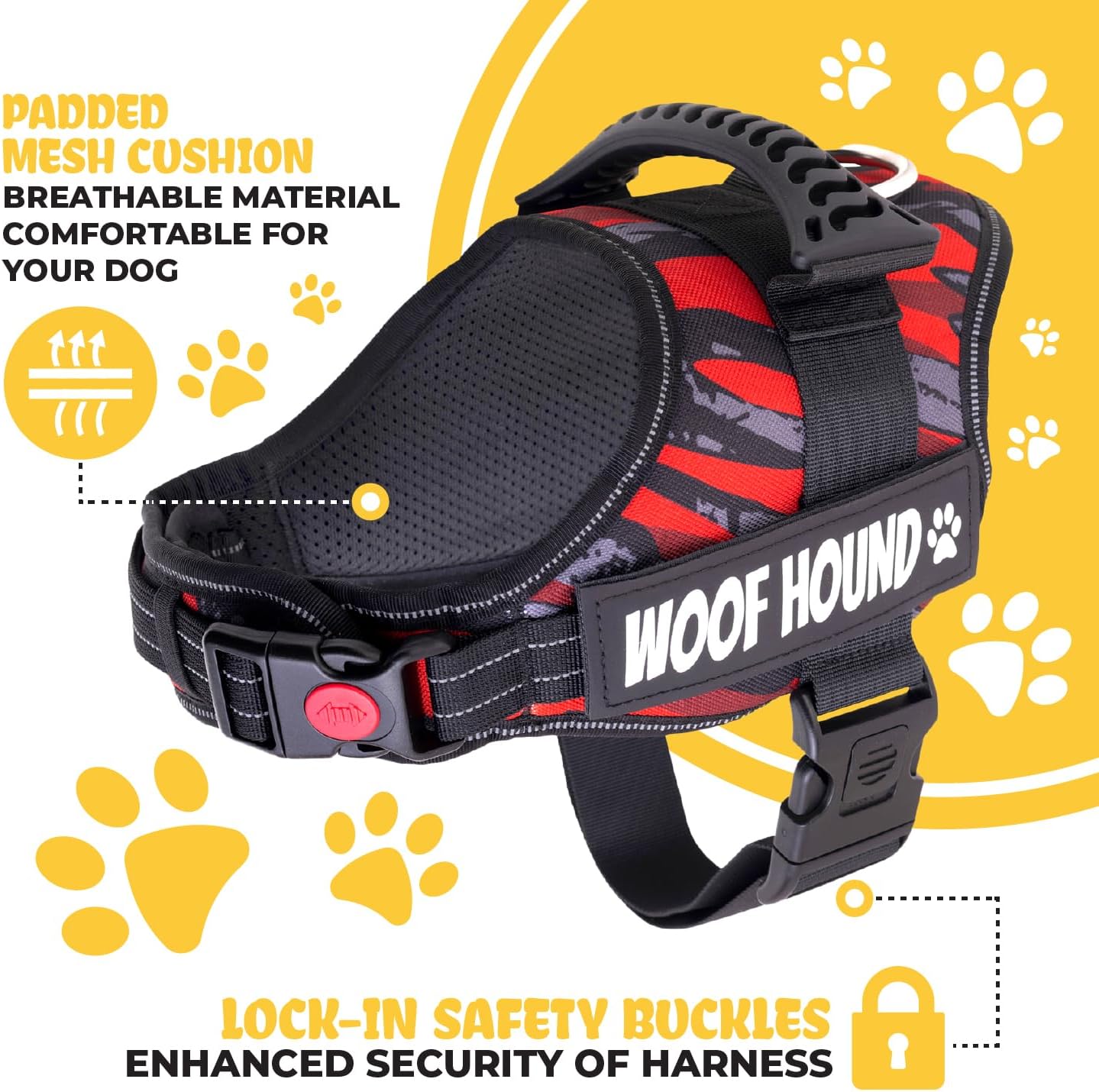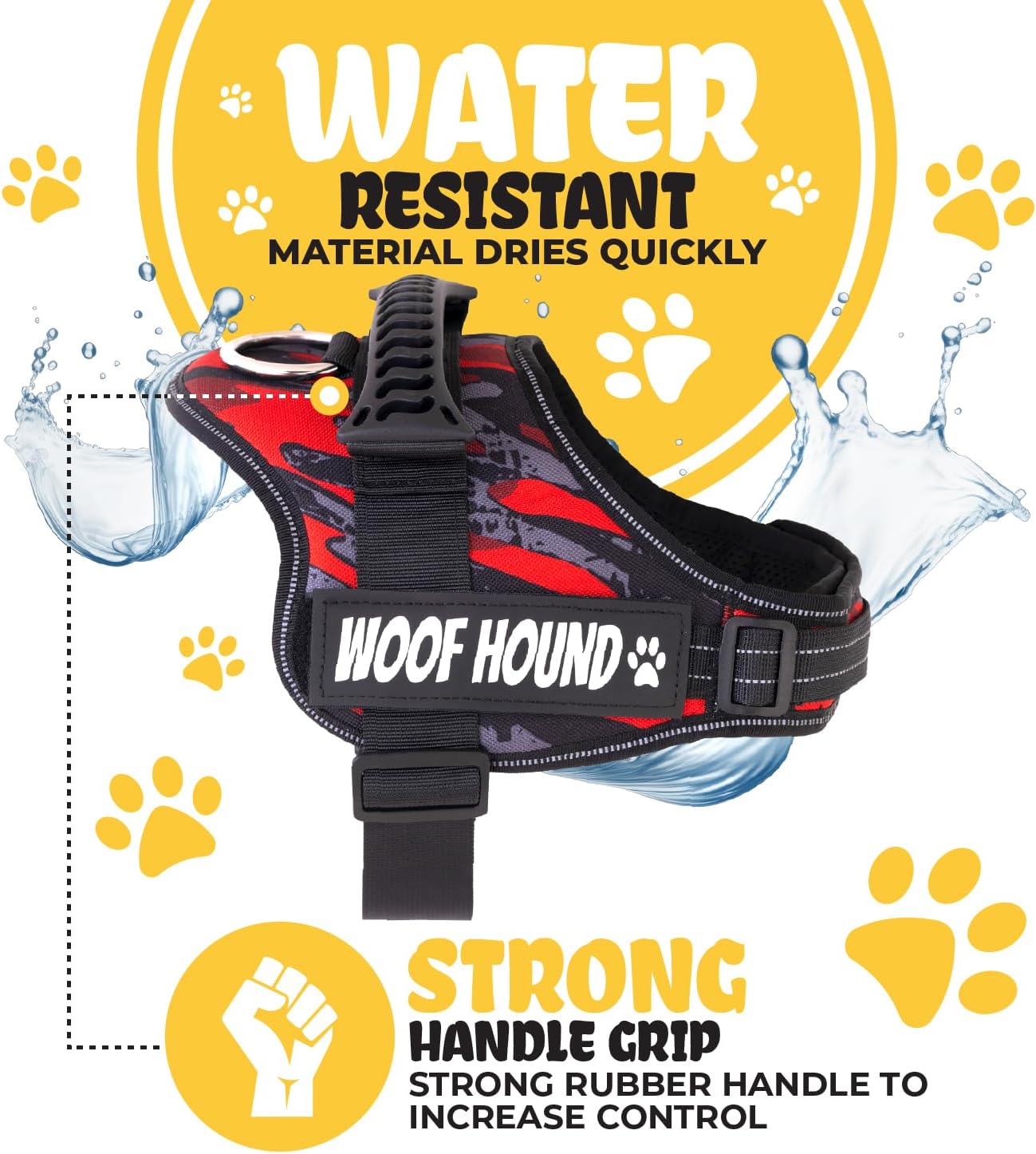 WOOF HOUND – Dog Harness, No Pull, Strong Grip, Adjustable, Reflective, Water Resistant, No Choking, Soft, Padded, Breathable, Light Weight, Rubber Handle, Easy On & Off, For Small Medium Large Dogs