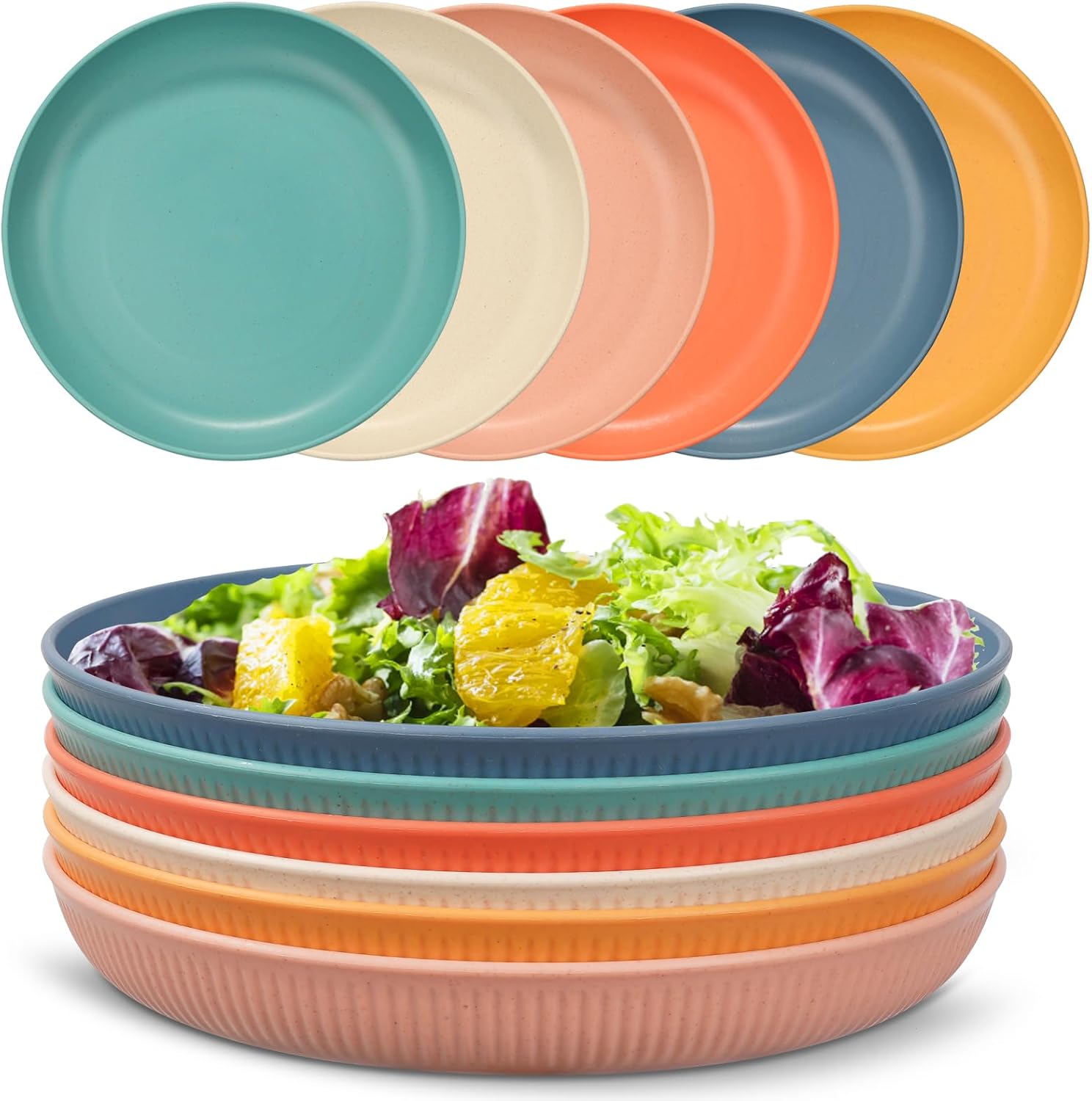 Worephu LightWeight & Unbreakable Dinner Plates Set of 6, Reusable Plastic Plates, 6 Colors Pizza/Pasta/Snack/Salad Dinner Sets for Home, Office, Picnic, Park