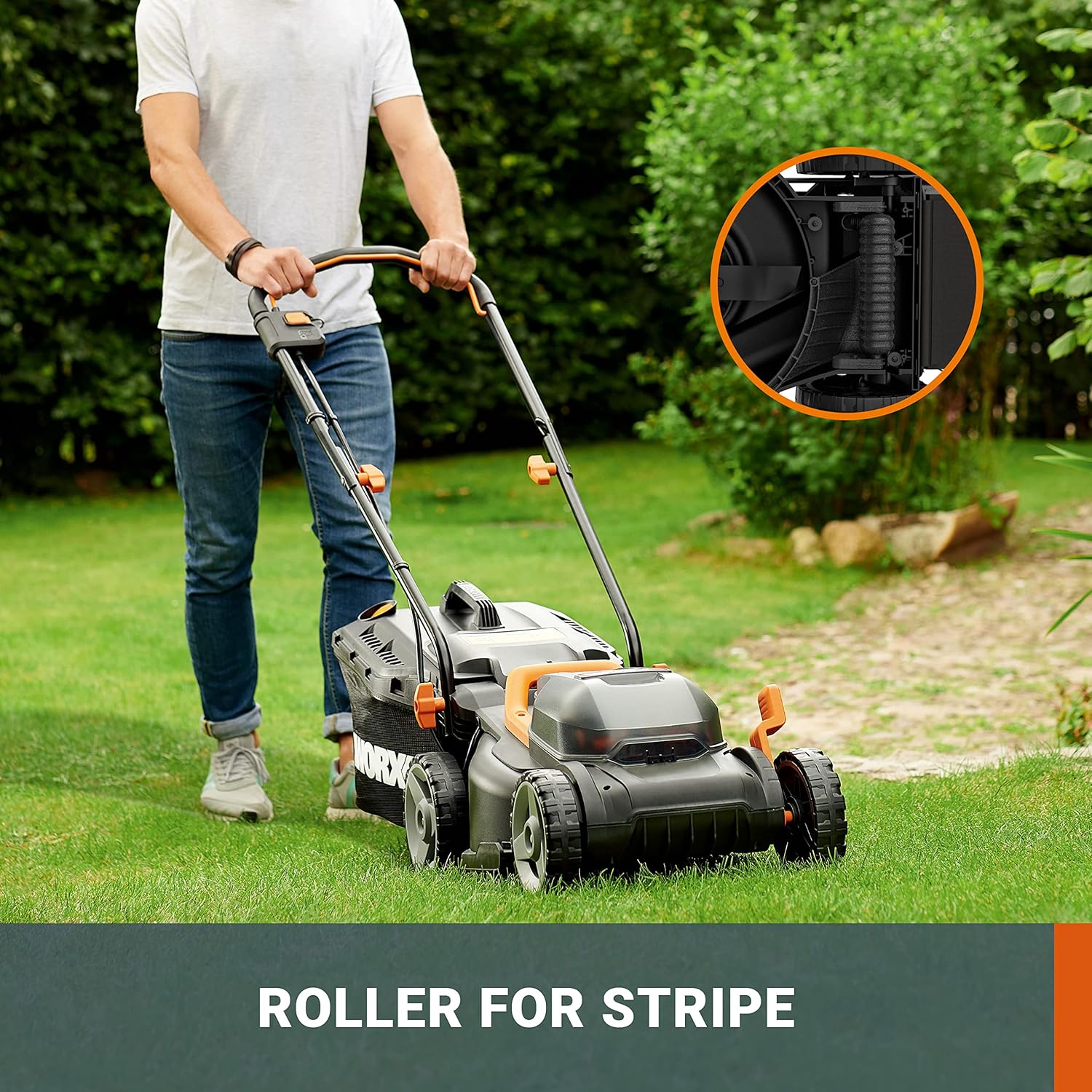 Worx WG779E.2 40V 34cm Cordless Lawn Mower, Petrol-Like Power, Cut-to-Edge Design, Adjustable Height, with 2×2.0Ah Batteries and Charger, Part of PowerShare Range