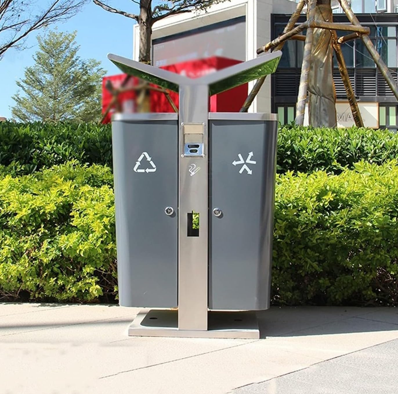 This outdoor trash can is designed with two bins, which can better classify garbage and make your living environment more tidy and orderly.