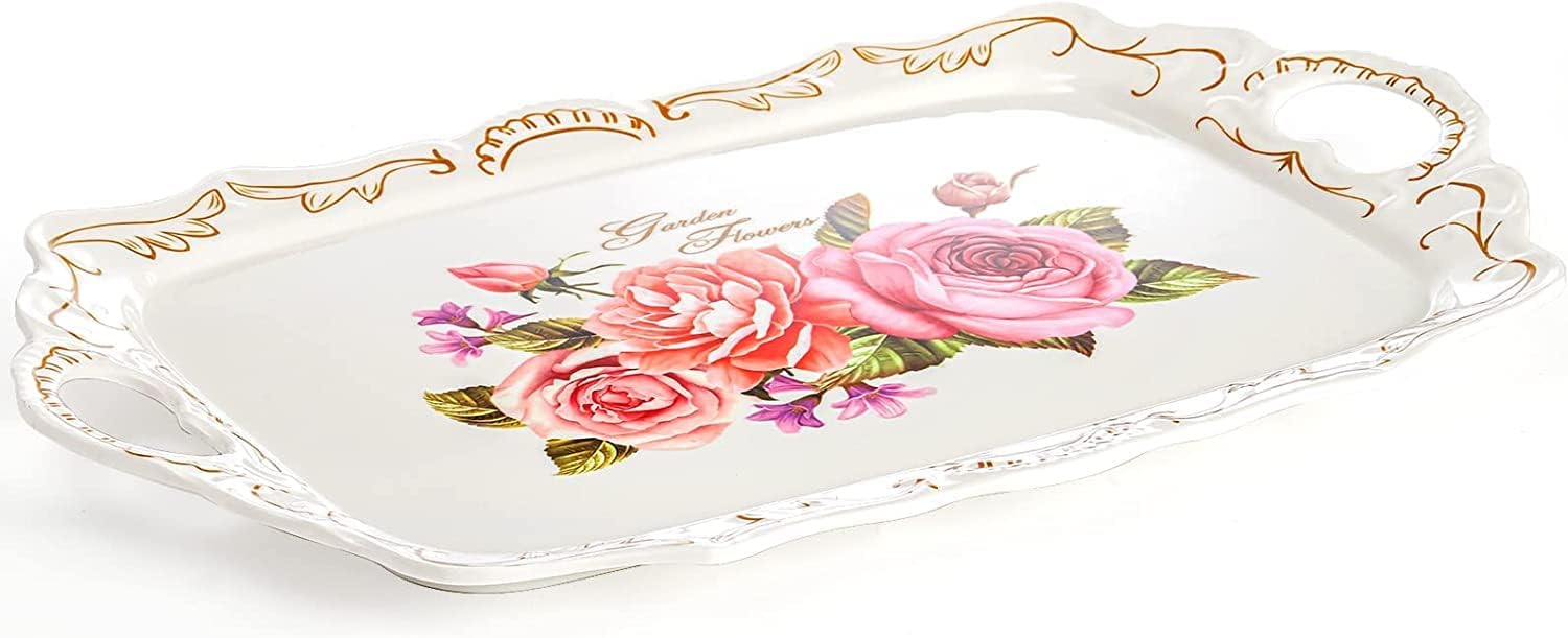 WUWEOT 3 Pack Serving Trays with Handles, Stackable Serving Platter BPA-Free Rectangle Food Tray Set with Flower Pattern for Home, Parties and Restaurants, Safe for Dishwashe