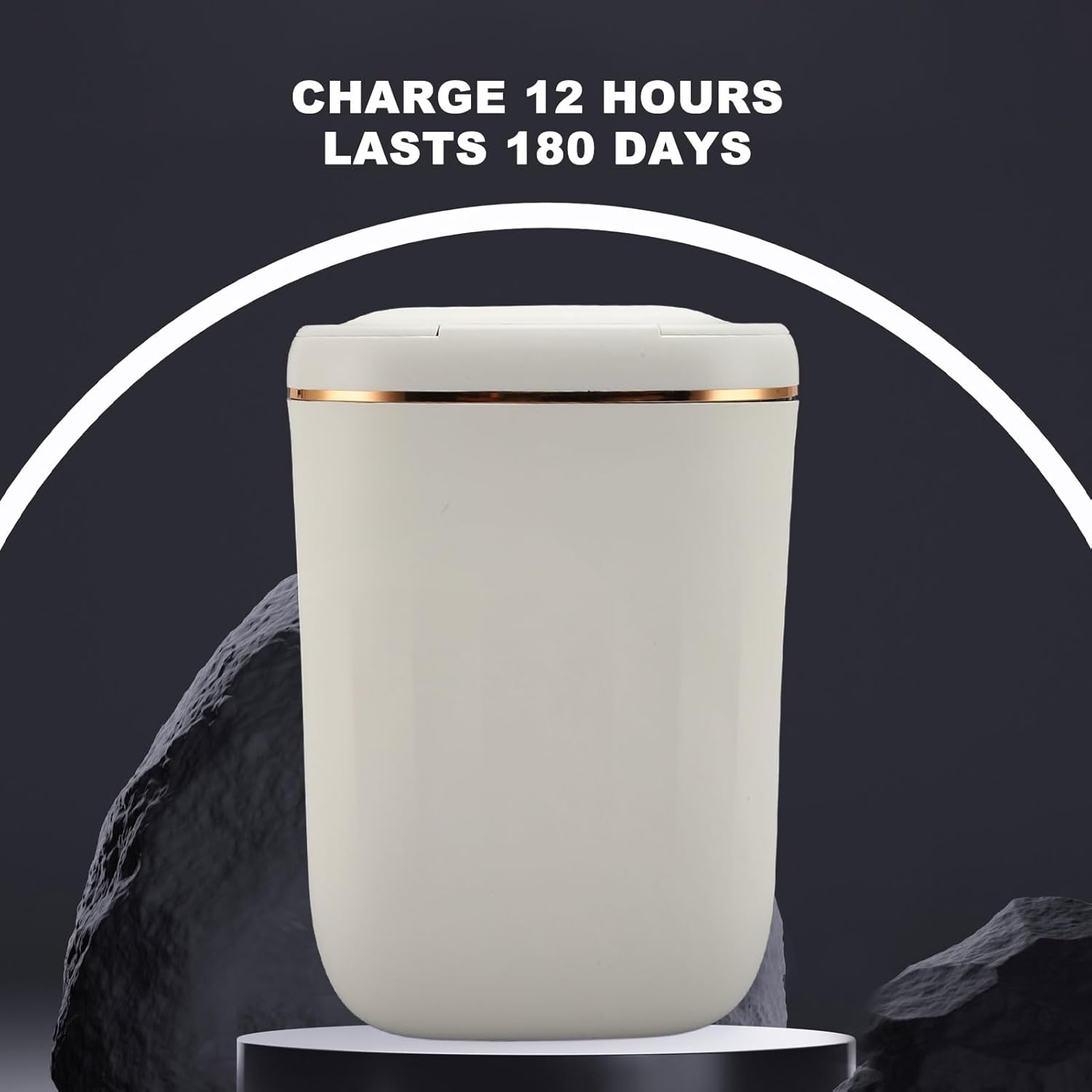 RECHARGEABLE CONVENIENCE: The smart trash can is rechargeable and equipped with a Type C charging port, featuring a power display for easy monitoring of battery levels. The waterproof plug included prevents oxidation and rust of the charging port.