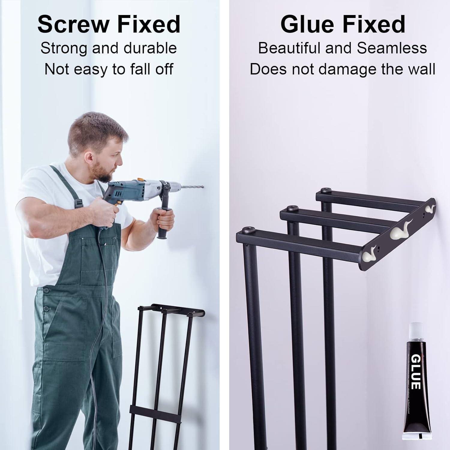 【2 Installation Methods】: We offer 2 installation methods for this towel holder. If you want a more permanent solution and don’t mind making holes in your walls, use screws. If you don’t want to make any permanent changes to your home, use glue.