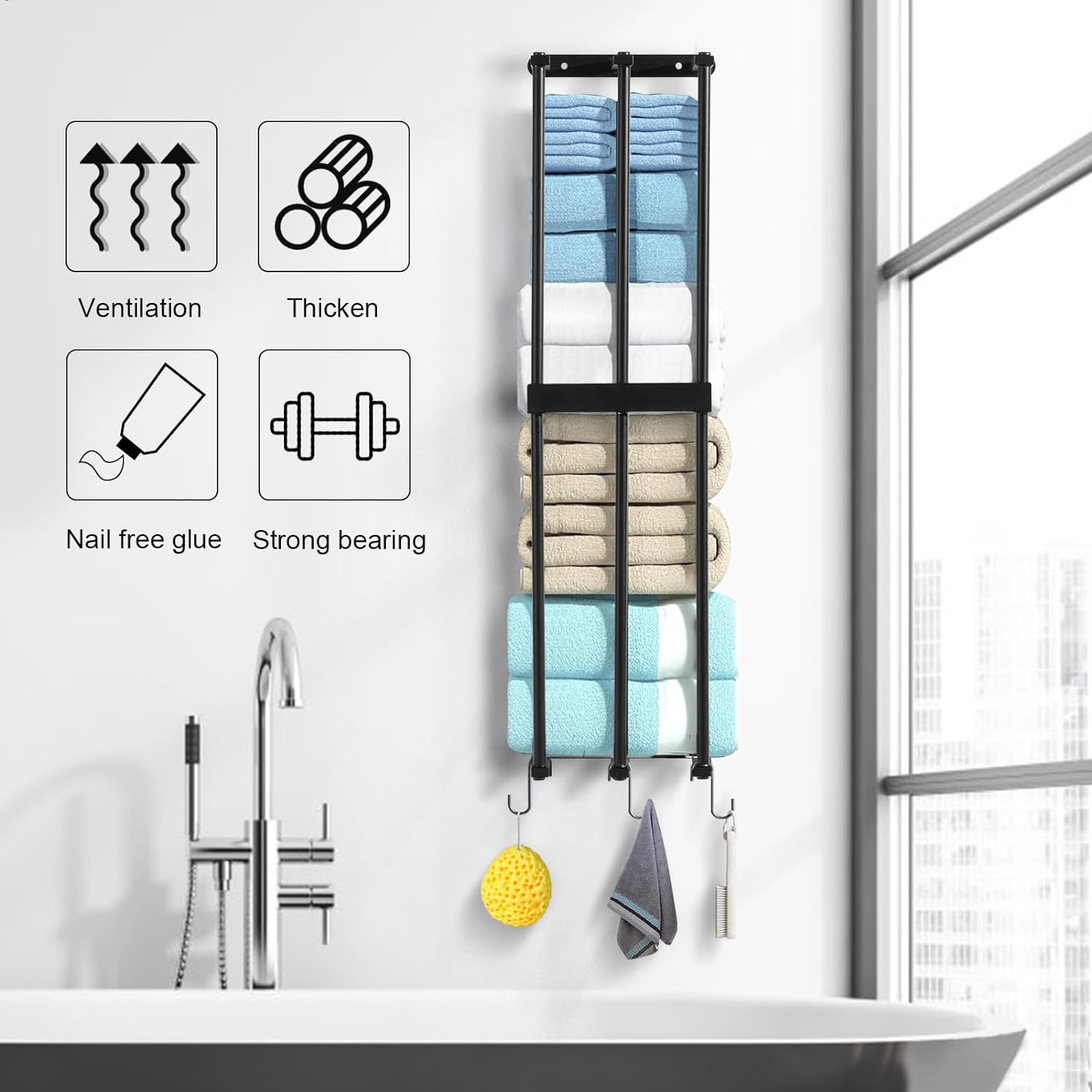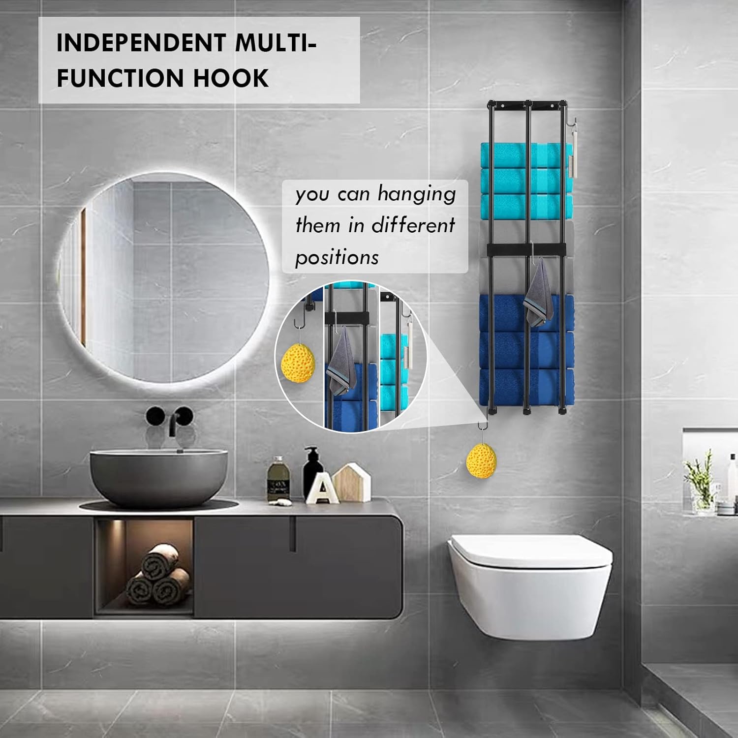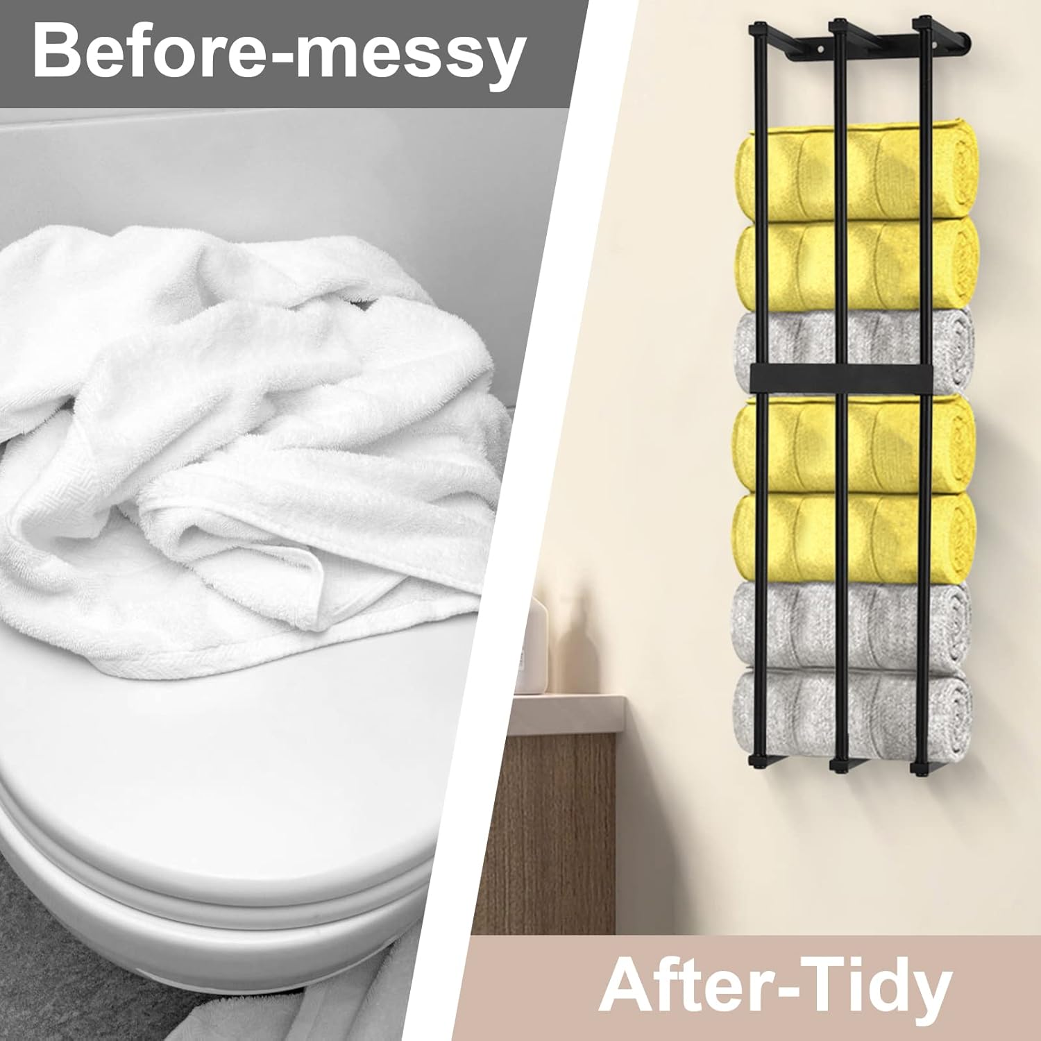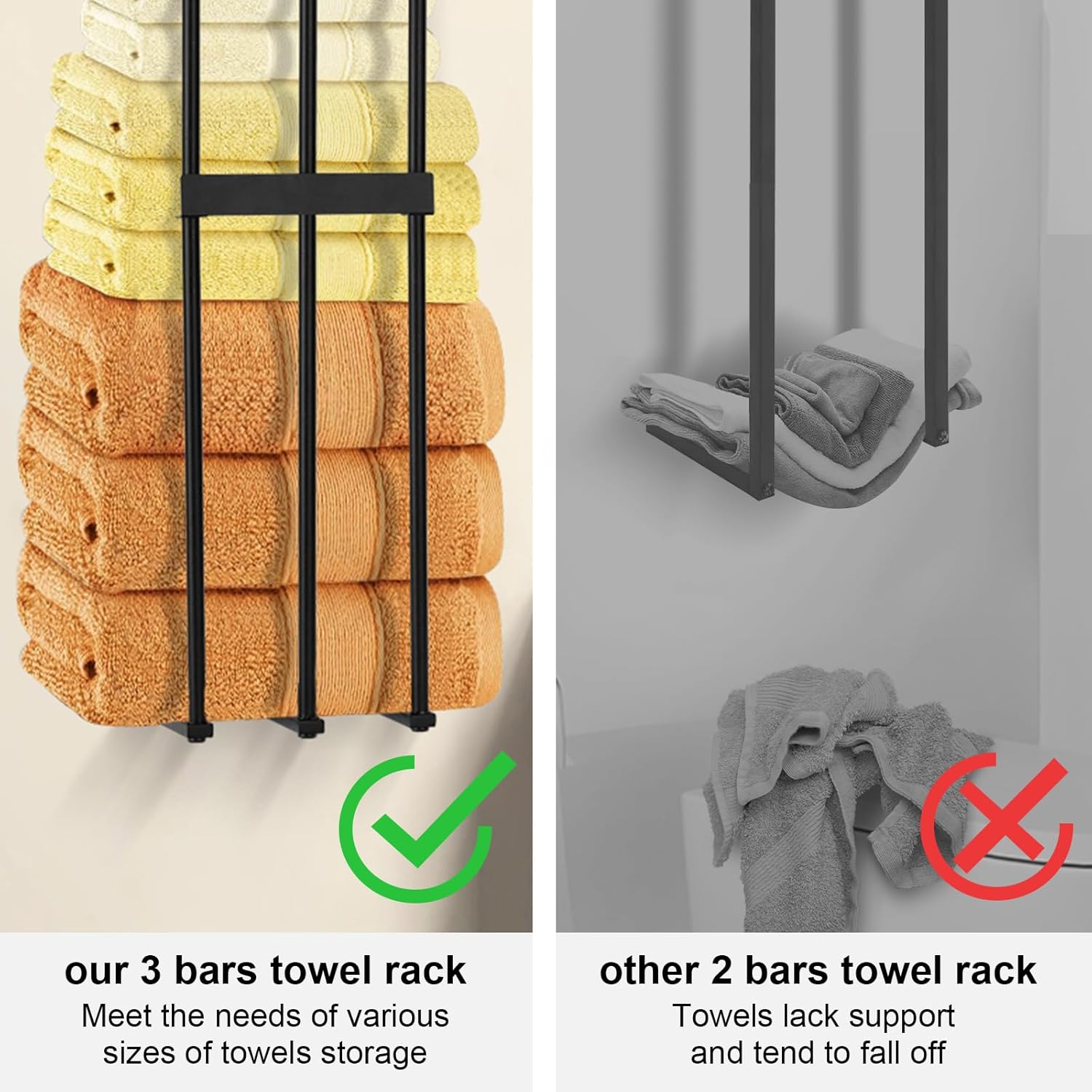 【3 Bars Bathroom Towel Rack】: Our towel holder for bathroom wall uses 3-Bars design newly. The additional middle rod provides more support and stability for the rolled towels, reducing the chance of them sliding or slipping off the rack.