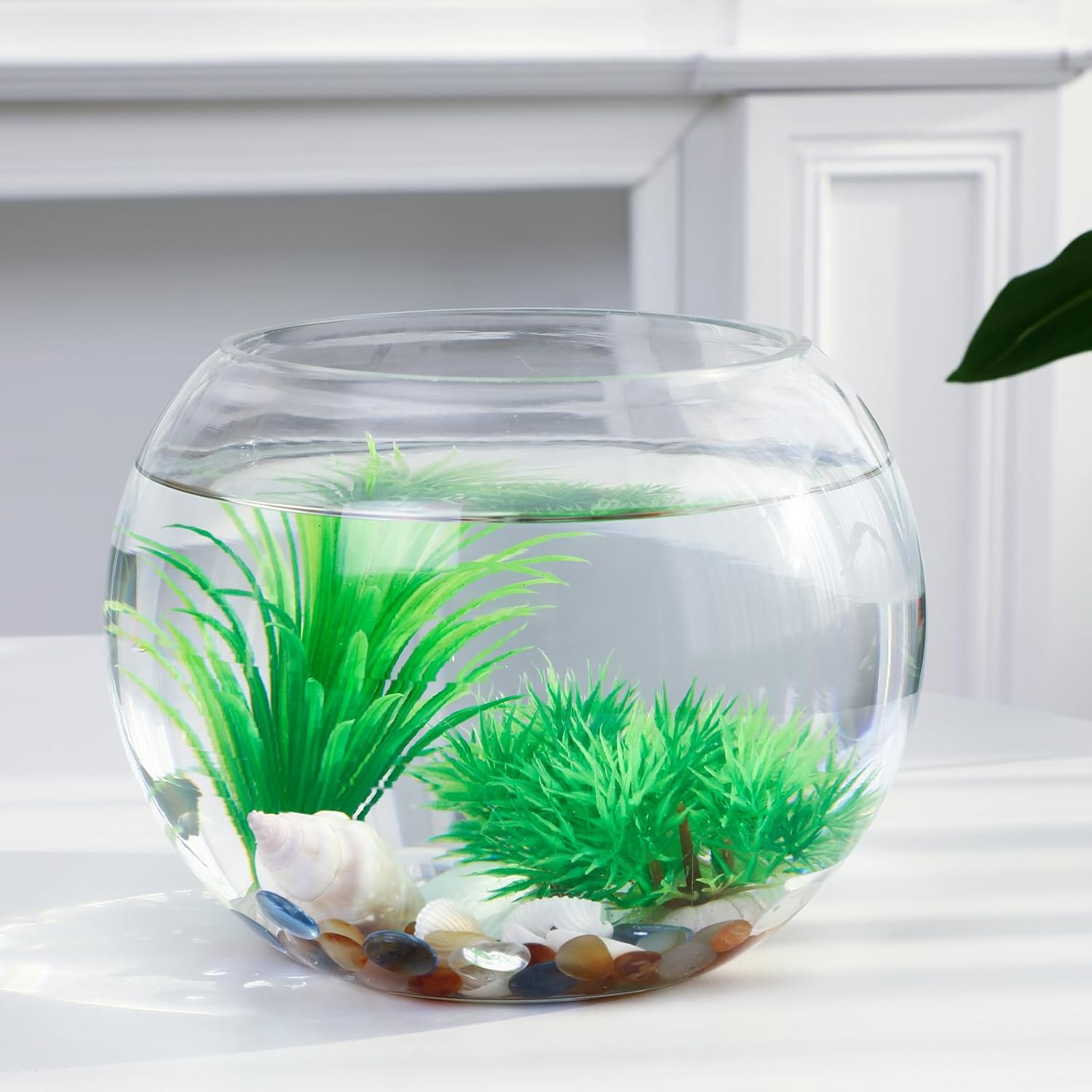 -Creative design, this small fish tank is a great partner to place your fish or shrimp round glass fish bowl.