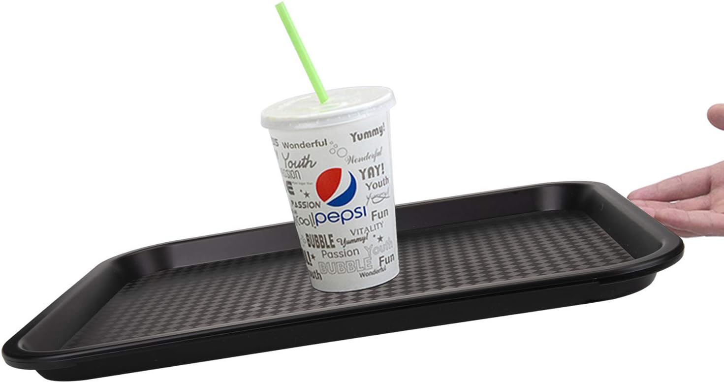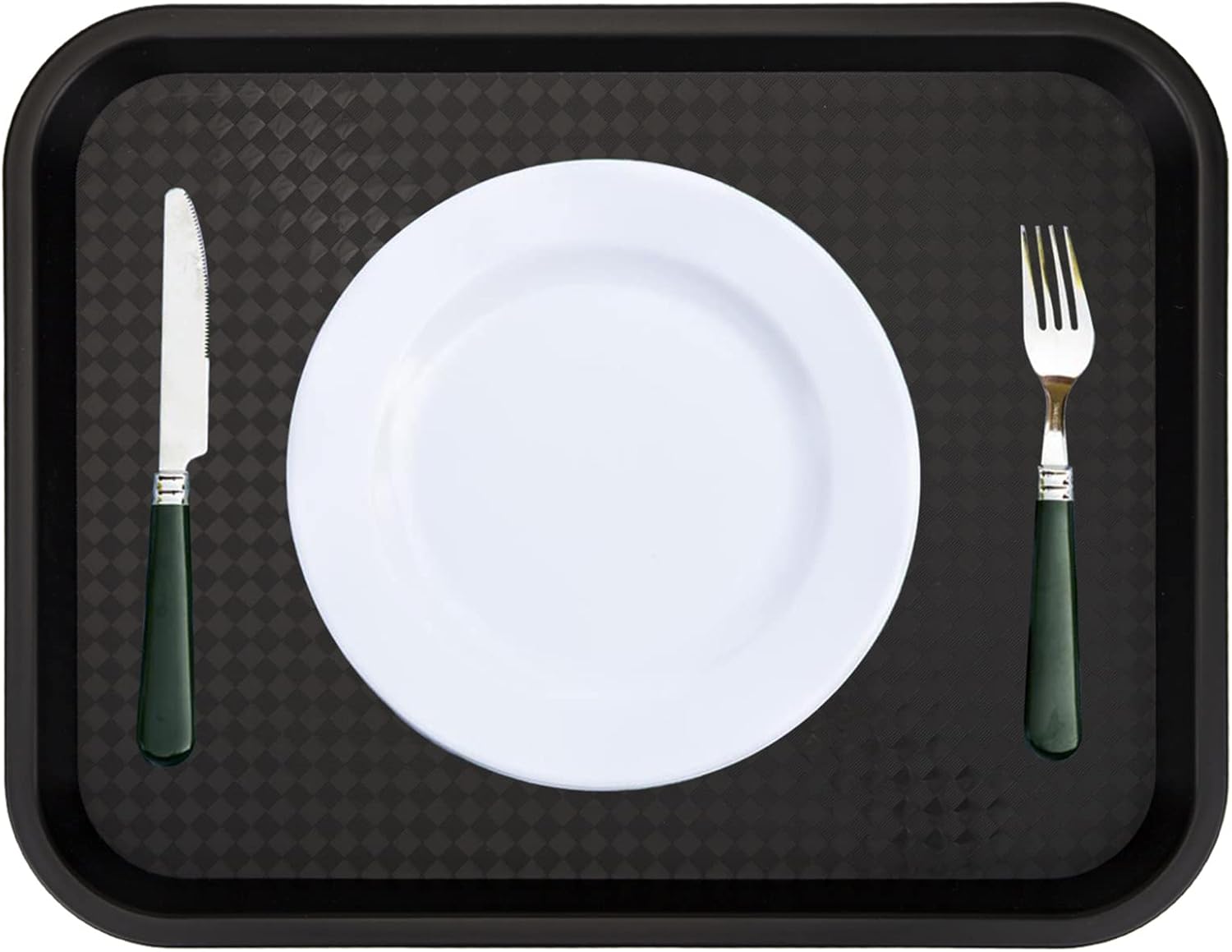 Yarlung 12 Pack Fast Food Tray, 13.8 x 10.5 Inch/35 x 26.7 cm Plastic Restaurant Serving Tray for Coffee Table, Kitchen, Party, Black