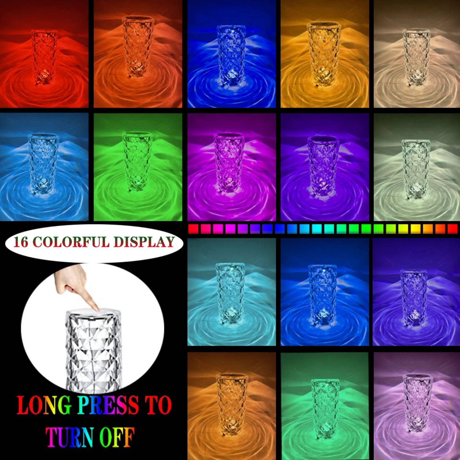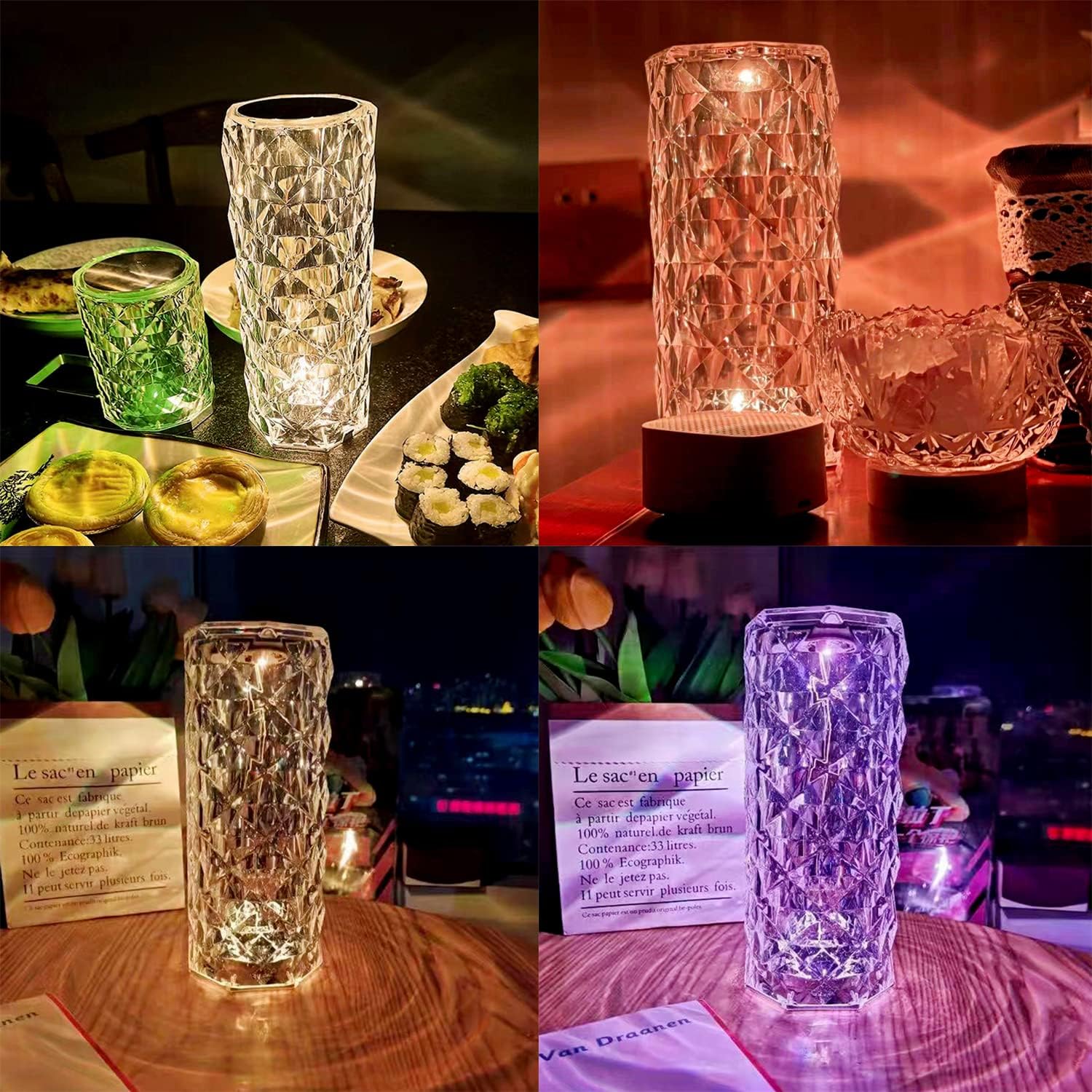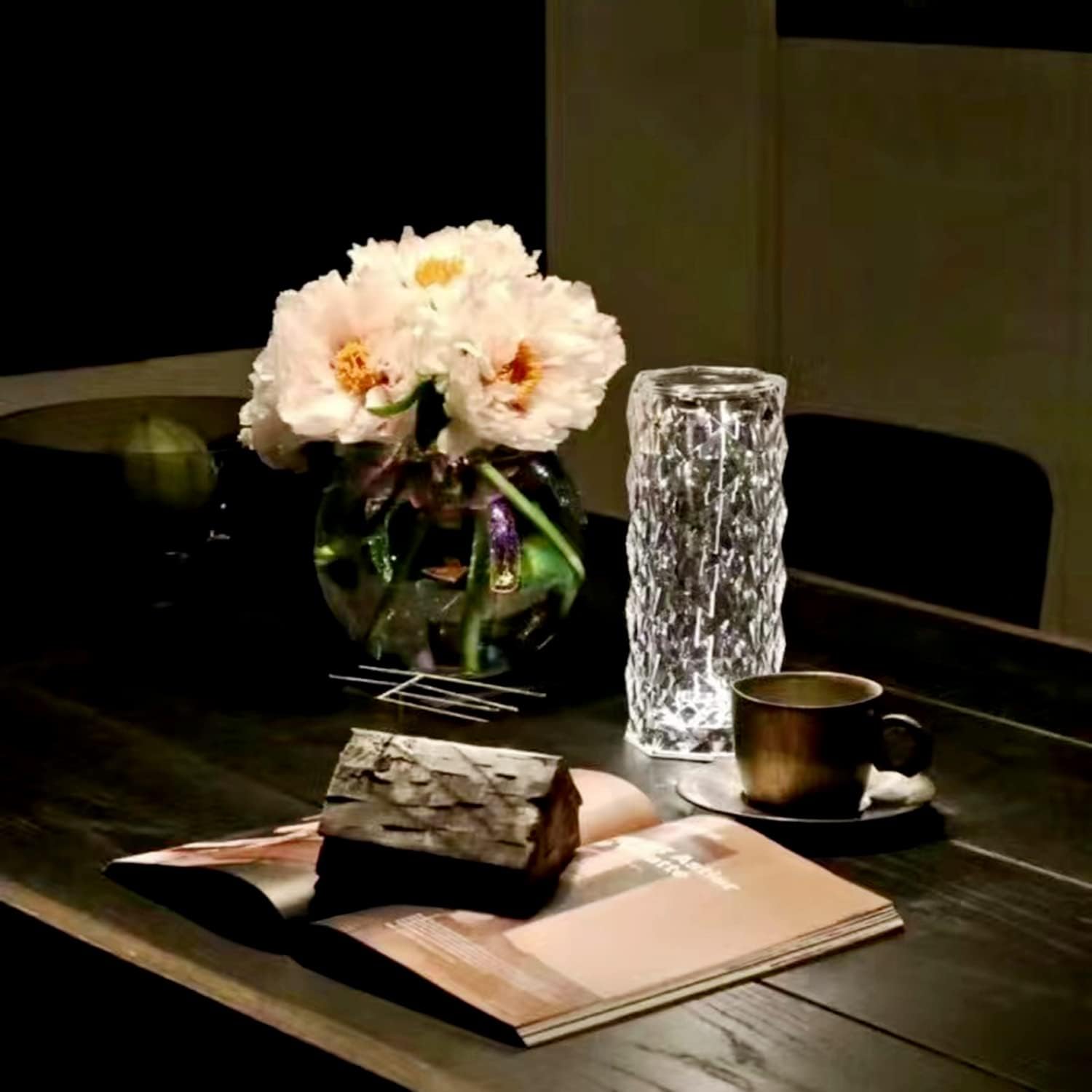 【High Quality Rose Diamond Desk Lamp】: The crystal night light is made of high quality acrylic material, with simple and smooth lines and simple design. The diamond-cut surface craftsmanship makes the edge lines very smooth, does not hurt the hand, and has a charming light and dark effect, which is luxurious and generous.