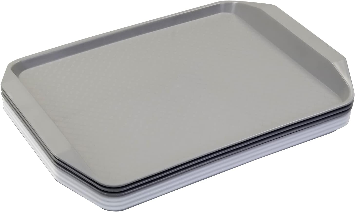 (as of [price_update_date] – DetailsSet of 6 fast food serving trays, 3 grey and 3 white Size: 42.5 cm x 30 cm x 1.8 cm Made of lightweight and durable plastic Easy to clean and storage Can be use as food serving tray to carry food or drinks”